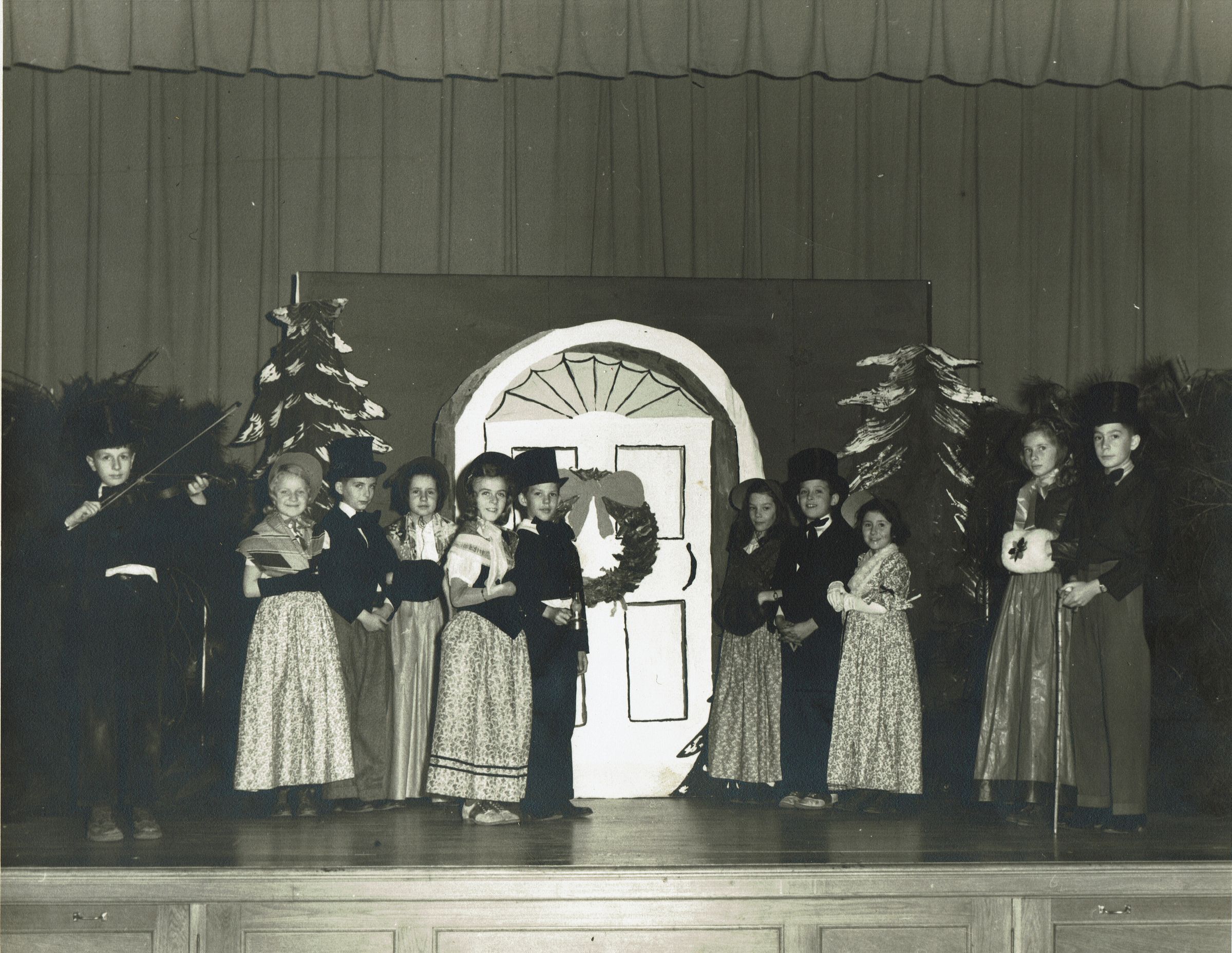 Photograph of the Glenwood Elementary School Holiday Play, December 1940. Nancy Woodruff (second from the left) was in 4th grade at the time.Acquisition