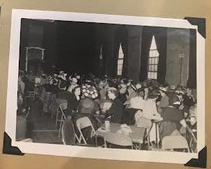 Black and white photographs of the PTA Fashion Show. Students are modelling outfits on a runway in front of the parents.Acquisition