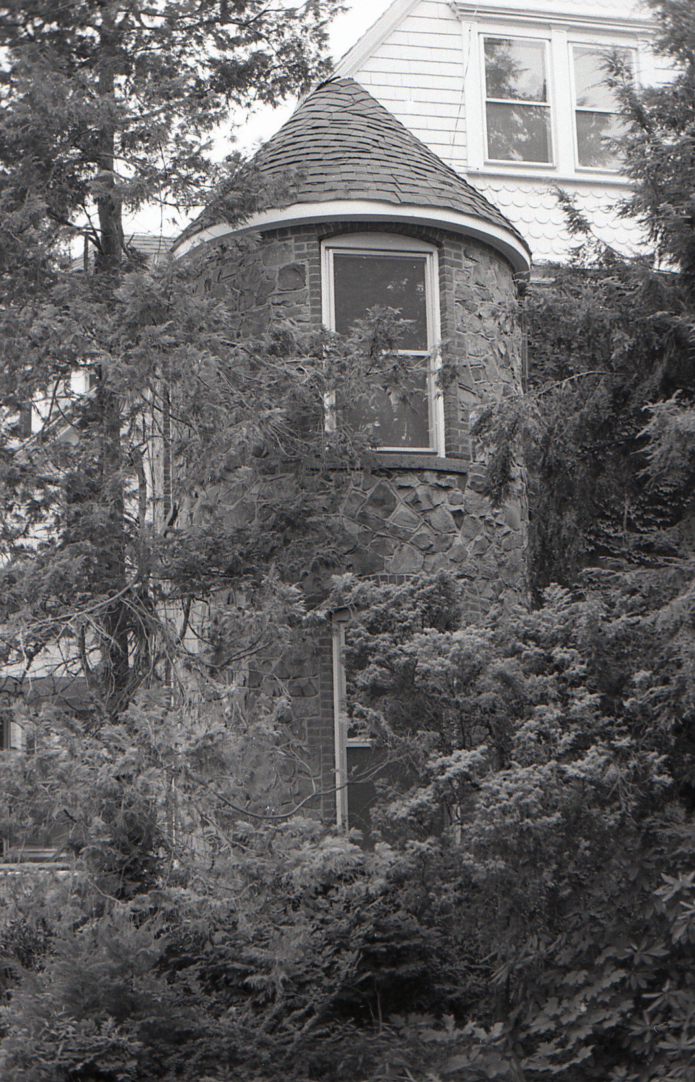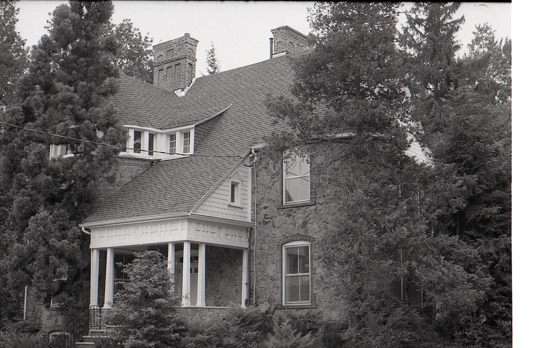 Greystone Cottage (details), 177 Hobart Avenue, from the collection of Charles H. Hayes and taken in 1972. Greystone Cottage was designed by architect Arthur B. Jennings and built in 1880. It was one of the earliest Hartshorn Homes.Photograph Details