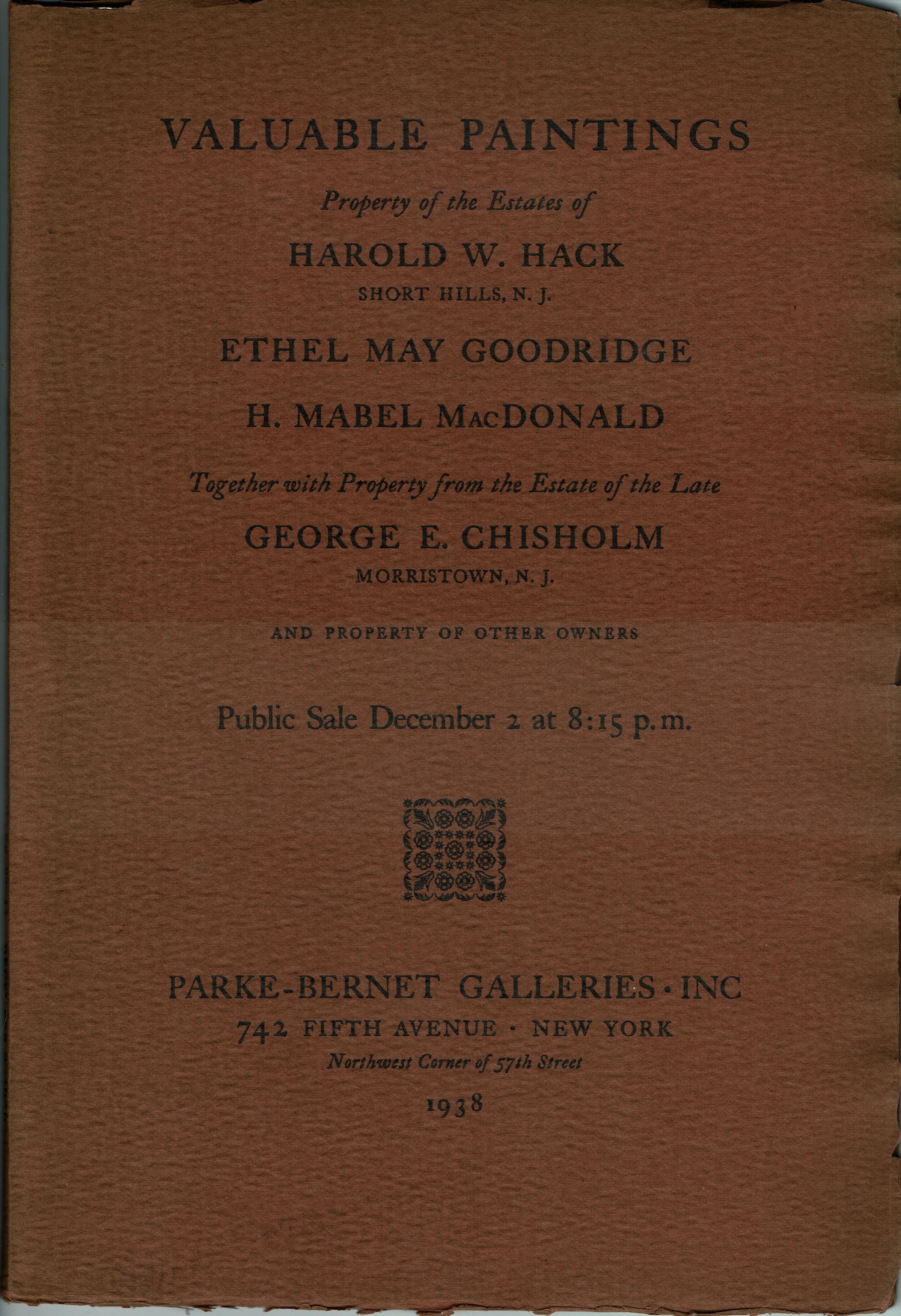 Hack: Harold Hack Estate Auction Catalog Parke-Bernet Galleries, 1938Entry/Object ID