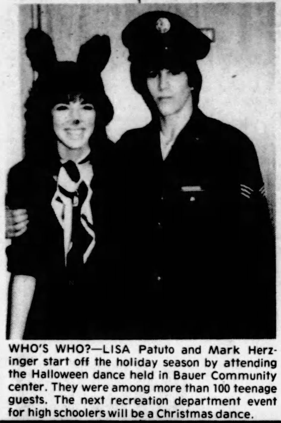 Photograph of Mark Herzinger and Lisa Patuto in costume at the Millburn Recreation Department's Halloween Dance in November 1982.Acquisition