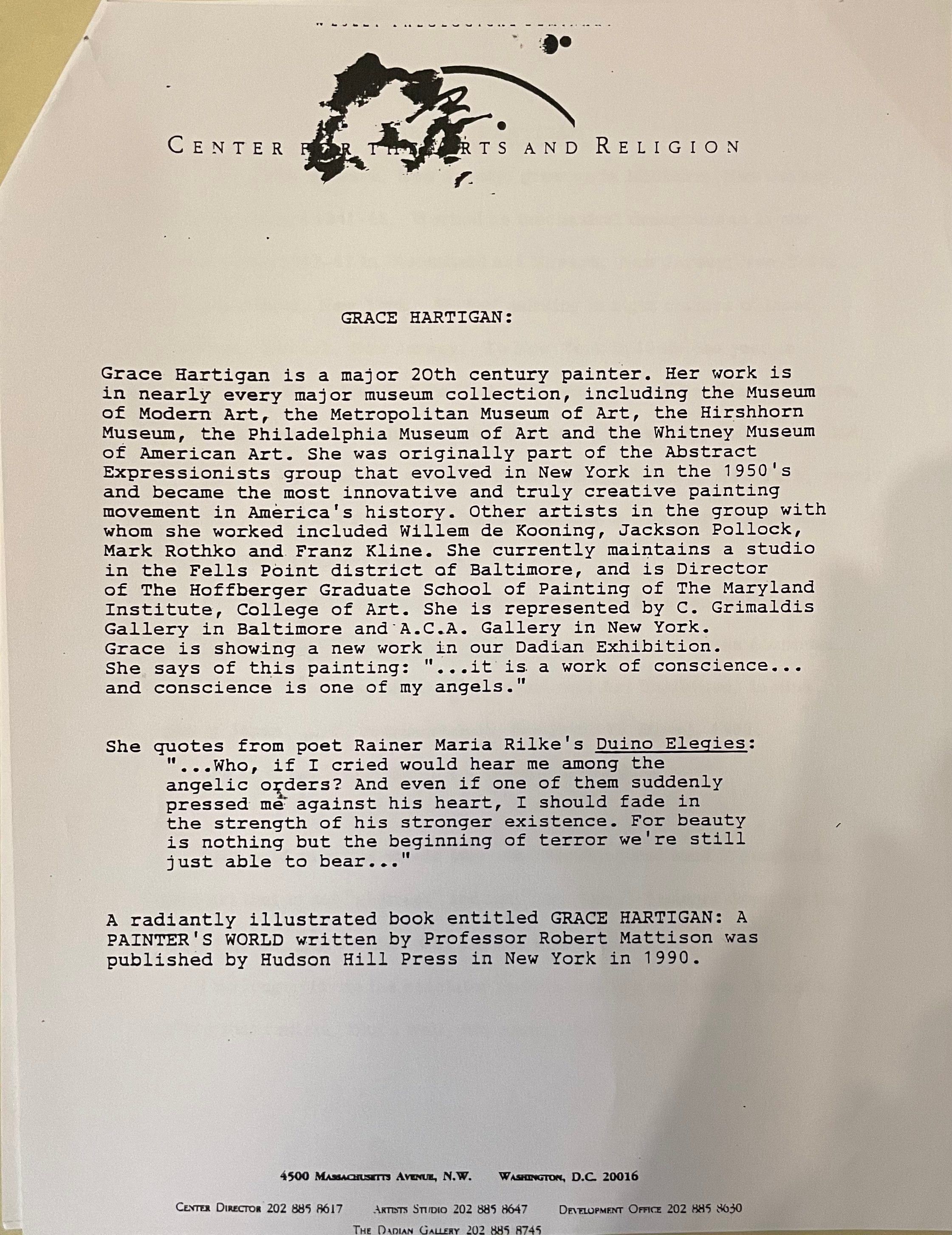Two copies of this description talks about Hartigan's life, achievements, and exhibitions. Date unknown.Acquisition