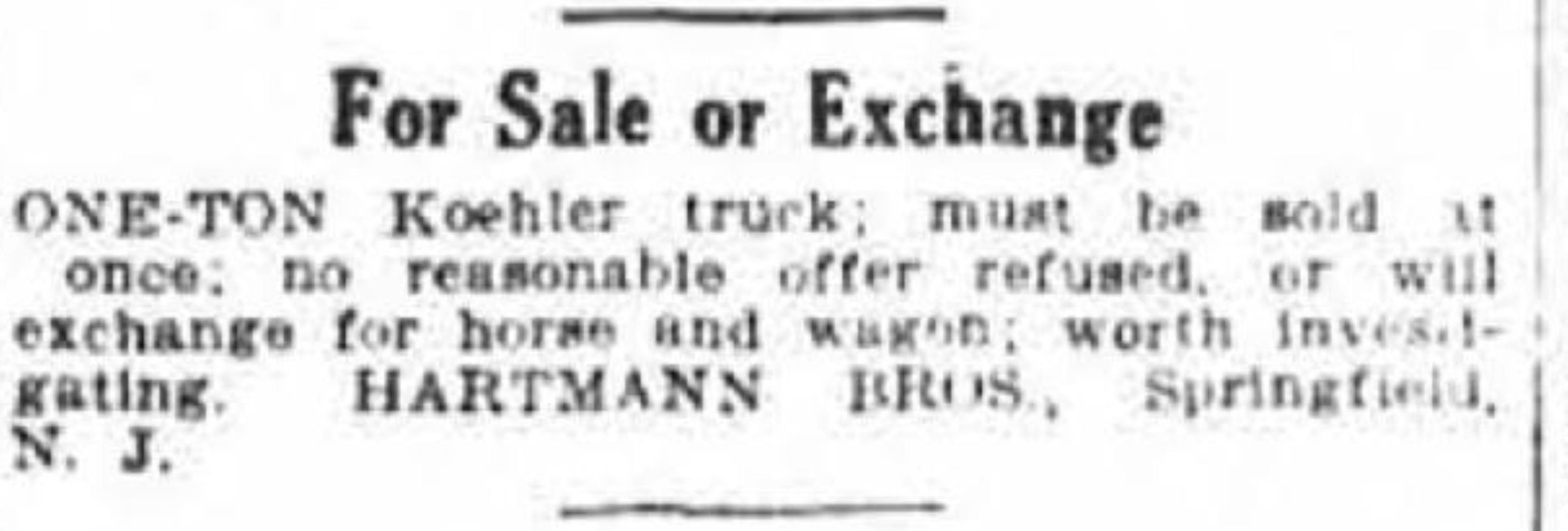 Photograph of a man driving a Hartmann Bros. delivery truck from c. 1914. Hartmann Bros. was a hardware store on Millburn Avenue that operated in the early 1900s. It is featured in the South Orange, Maplewood, Millburn & Springfield, N.J." New York: G.W. Richardson business directory, c. 1915. See 2022.236.020.