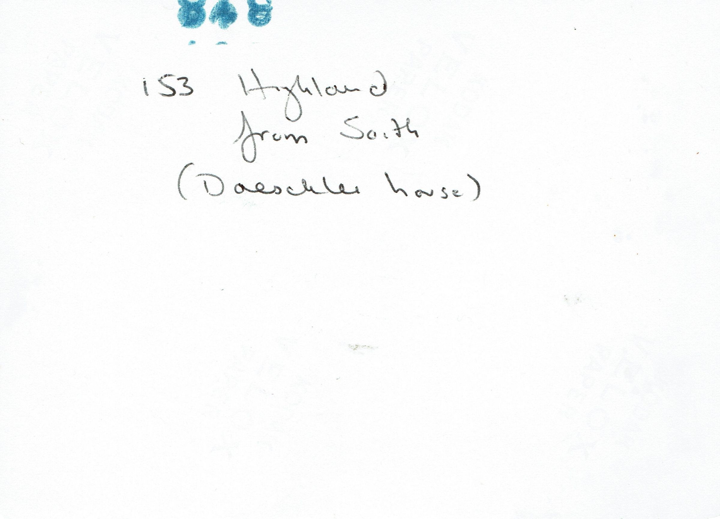 Photograph of 153 Highland Avenue as viewed from the south. Handwritten note on back of photograph says Daeschler house.Acquisition