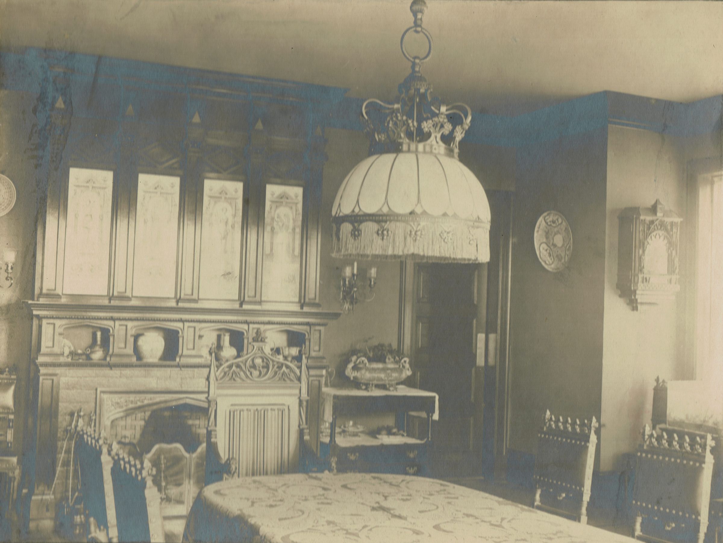 Photograph of the dining room in the second home of the Hartshorn family at 18 Crescent Place, Short Hills, taken by Short Hills photographer James Shackleton. The house was dismantled in 1938, after the death of Stewart Hartshorn.Collection