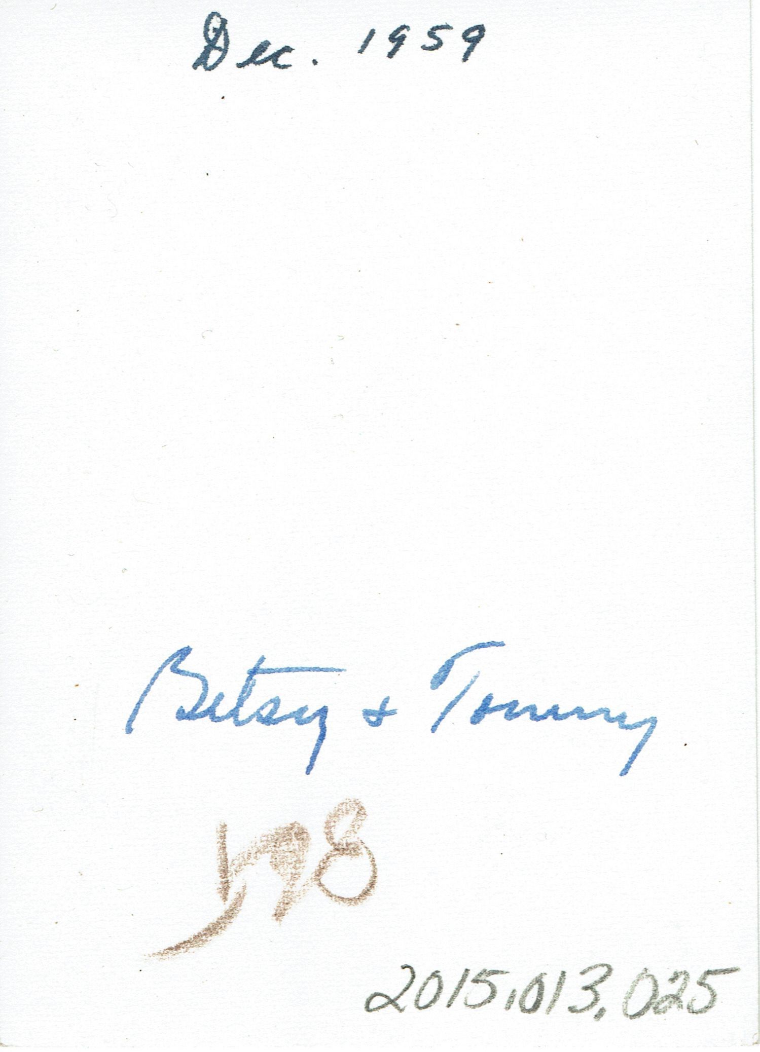 Photograph in the Hartshorn Collection labeled Betsy & Tommy and Dated December 1959.Collection