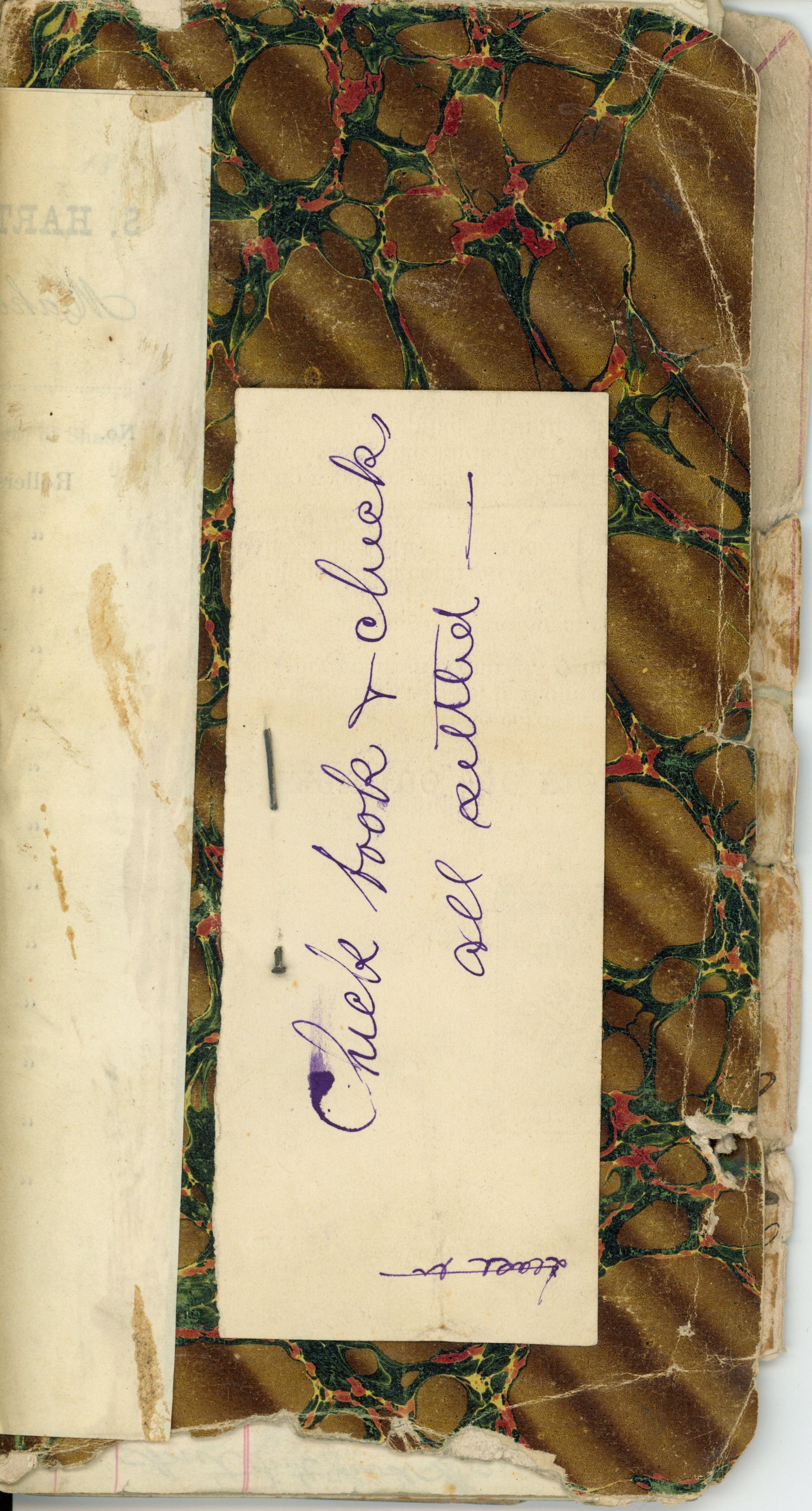 Hartshorn: Check Book with Expenses, 1875Entry/Object ID