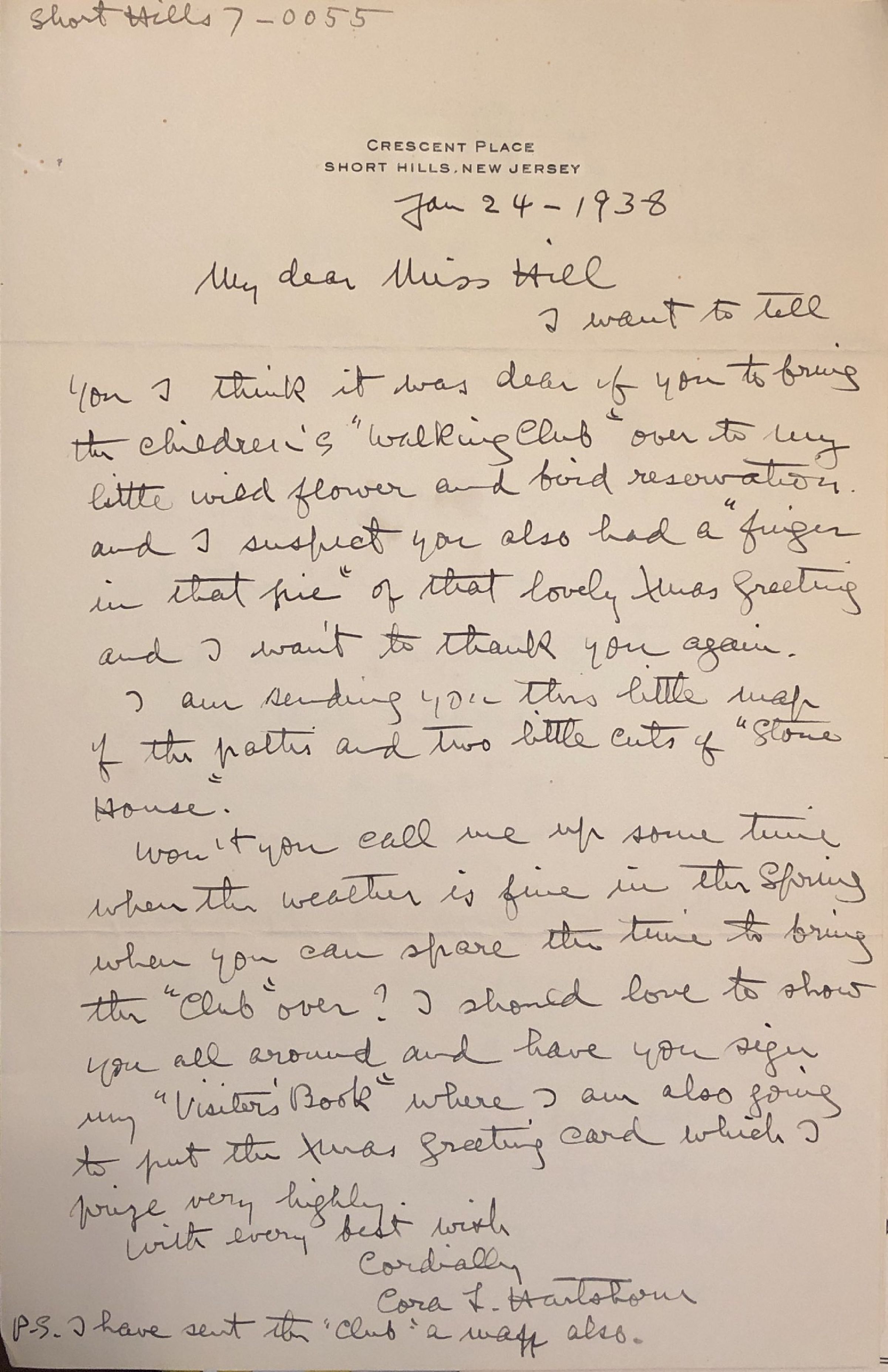 1. To Miss Hill, dated Jan. 24th, 1938