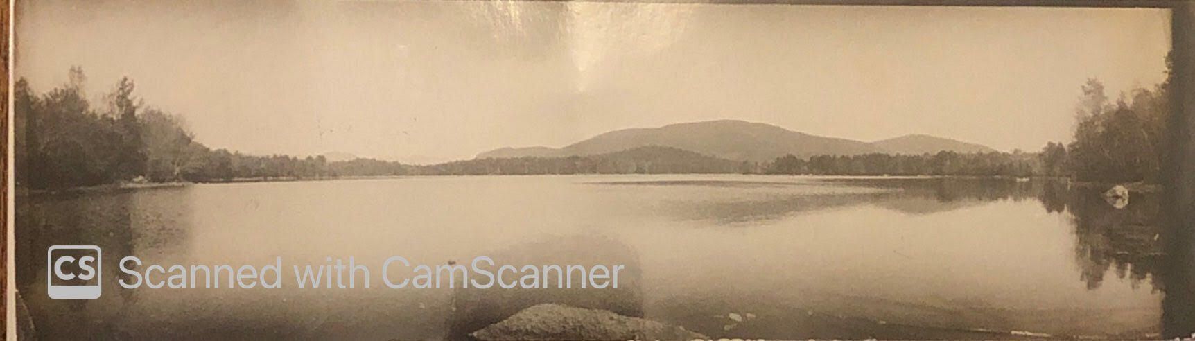Photograph of Squam Lake, near the Hartshorn family's second home in New Hampshire. Written on the back of the photograph: "Squam Lake, NH. Red Hill view up Bean Cove. CL Hartshorn."Acquisition