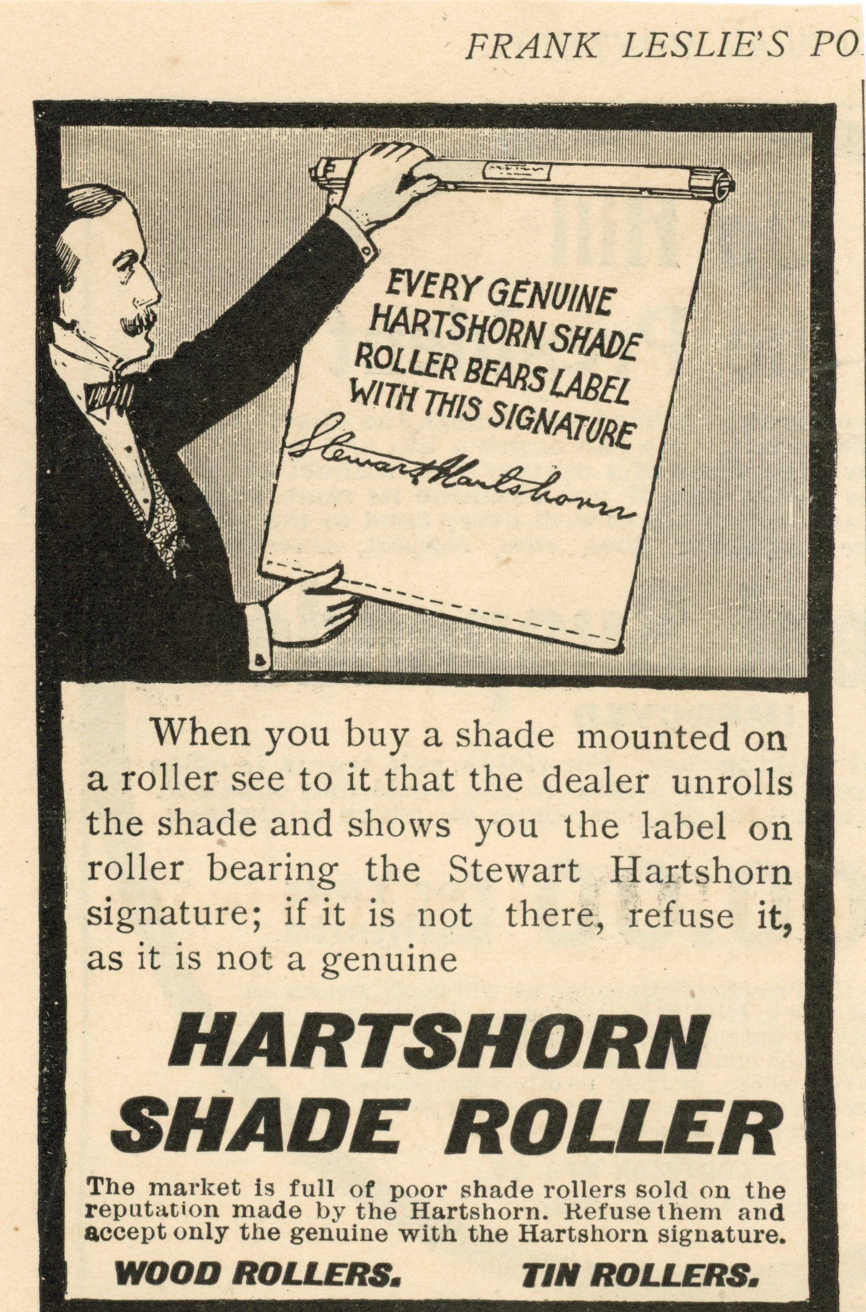 Hartshorn: Hartshorn Shade Roller Advertisement from Frank Leslie'sEntry/Object ID