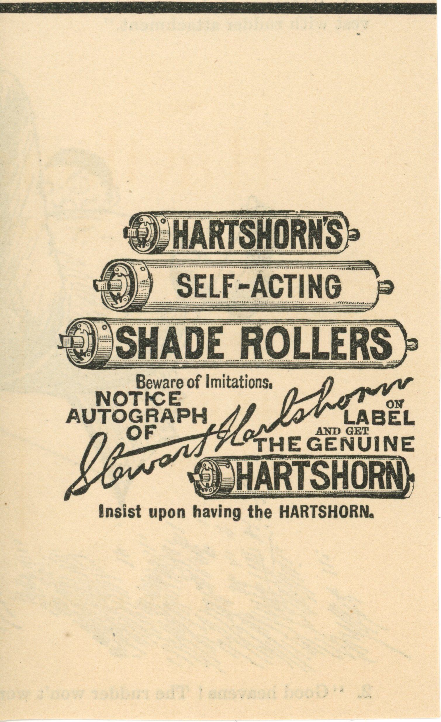 Hartshorn: Hartshorn's Self-Acting Shade Roller AdvertismentEntry/Object ID
