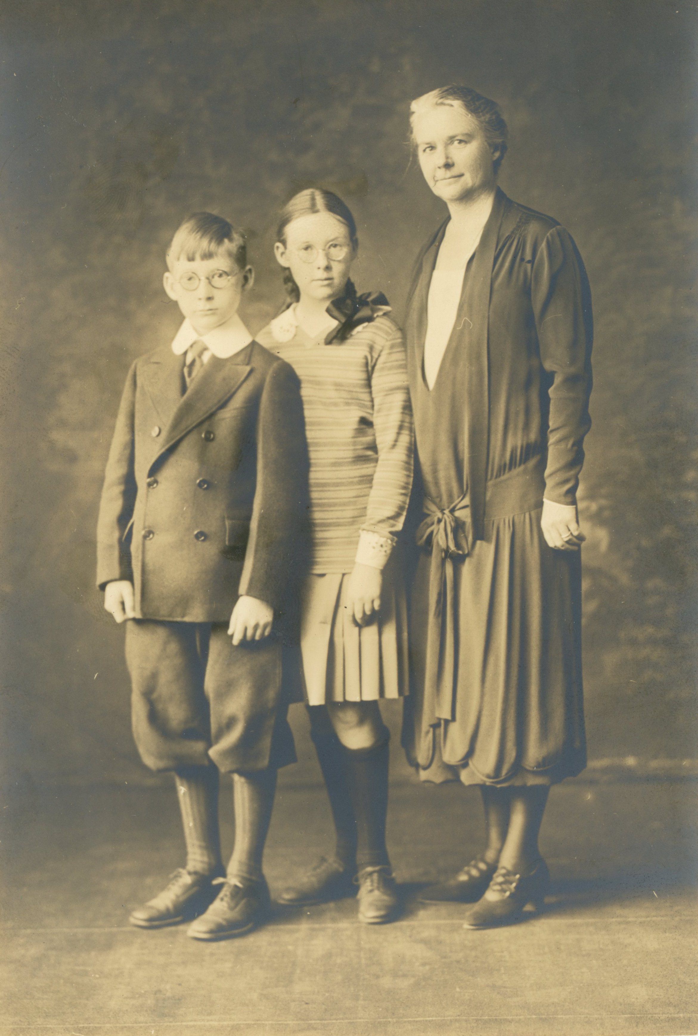 Photograph of Jennette Cowles Vorce Hartshorn, Catherine and Stewart Hartshorn III from Christmas 1927. Photograph was sent to Stewart Henry Hartshorn along with a Christmas card in 1927.Acquisition