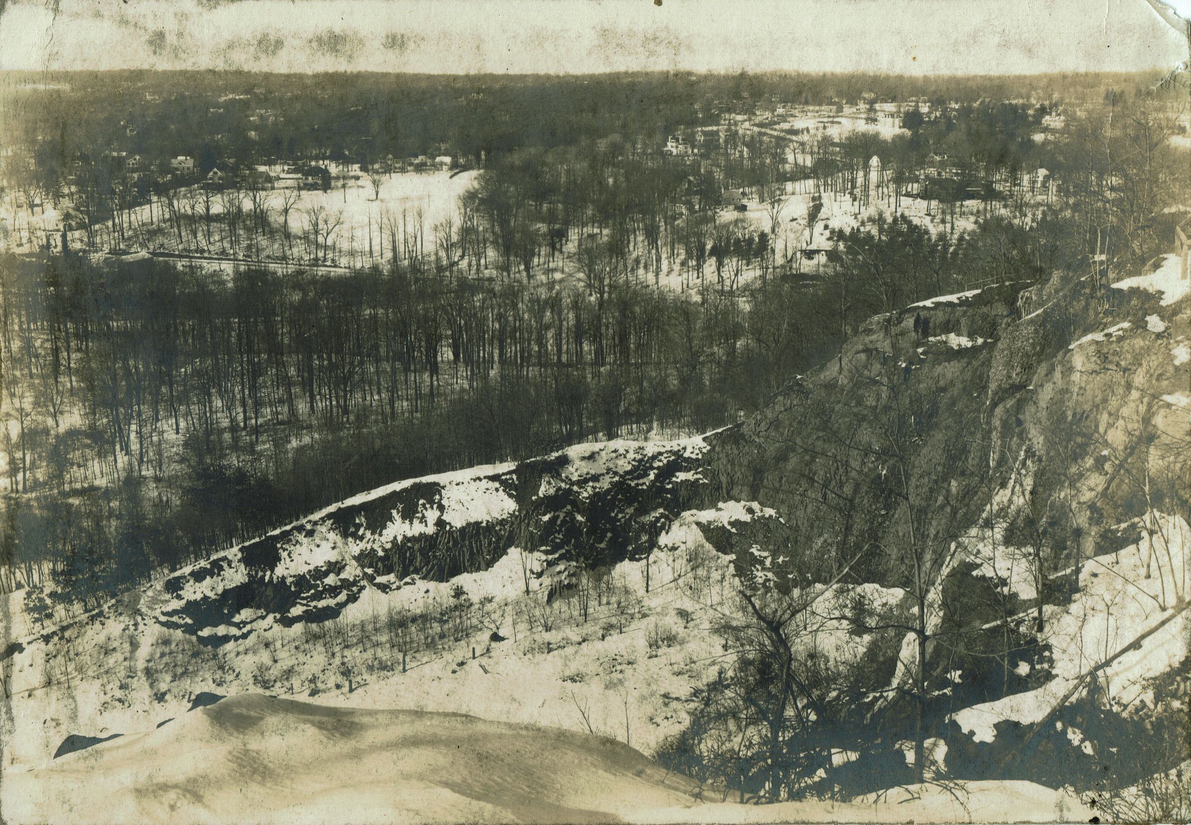 Photograph from the Hartshorn Family collection. Description on back of photo reads: Overlooking Short Hills, m.f. from quarry, Millburn Mountain, South Mountain Reservation, 1921-23.Acquisition