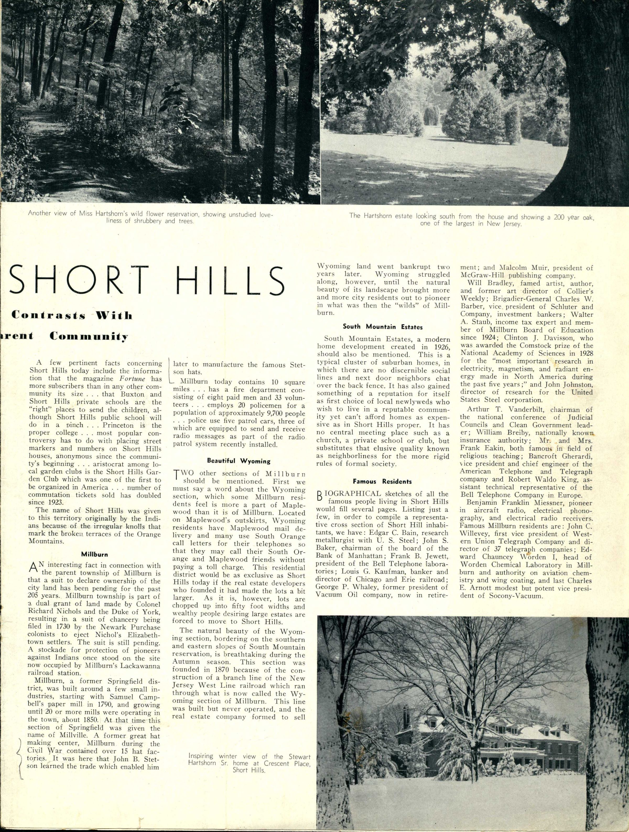 Hartshorn: Paradise in Short Hills Article, 1935