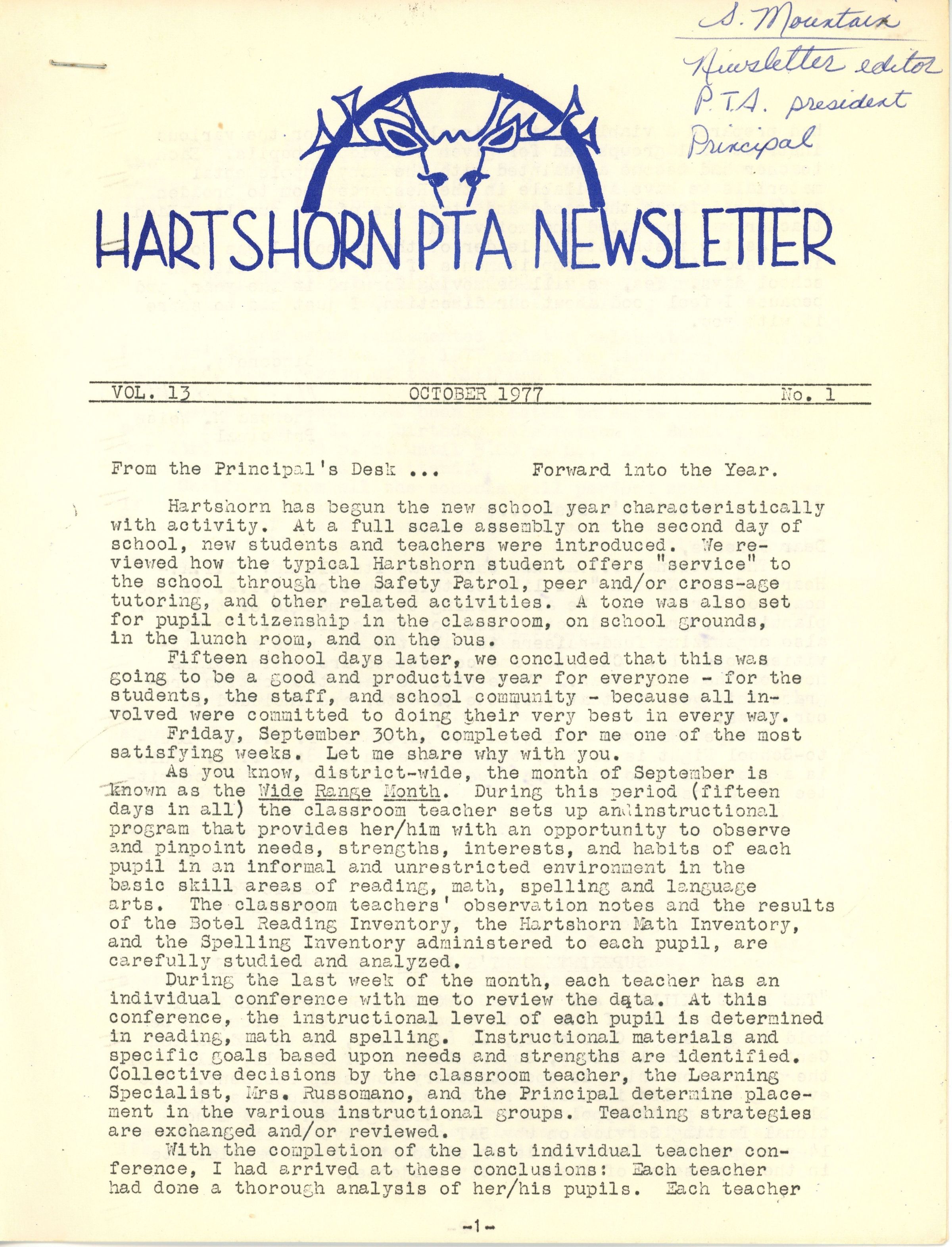 Hartshorn School: Hartshorn PTA Newsletter, 1977