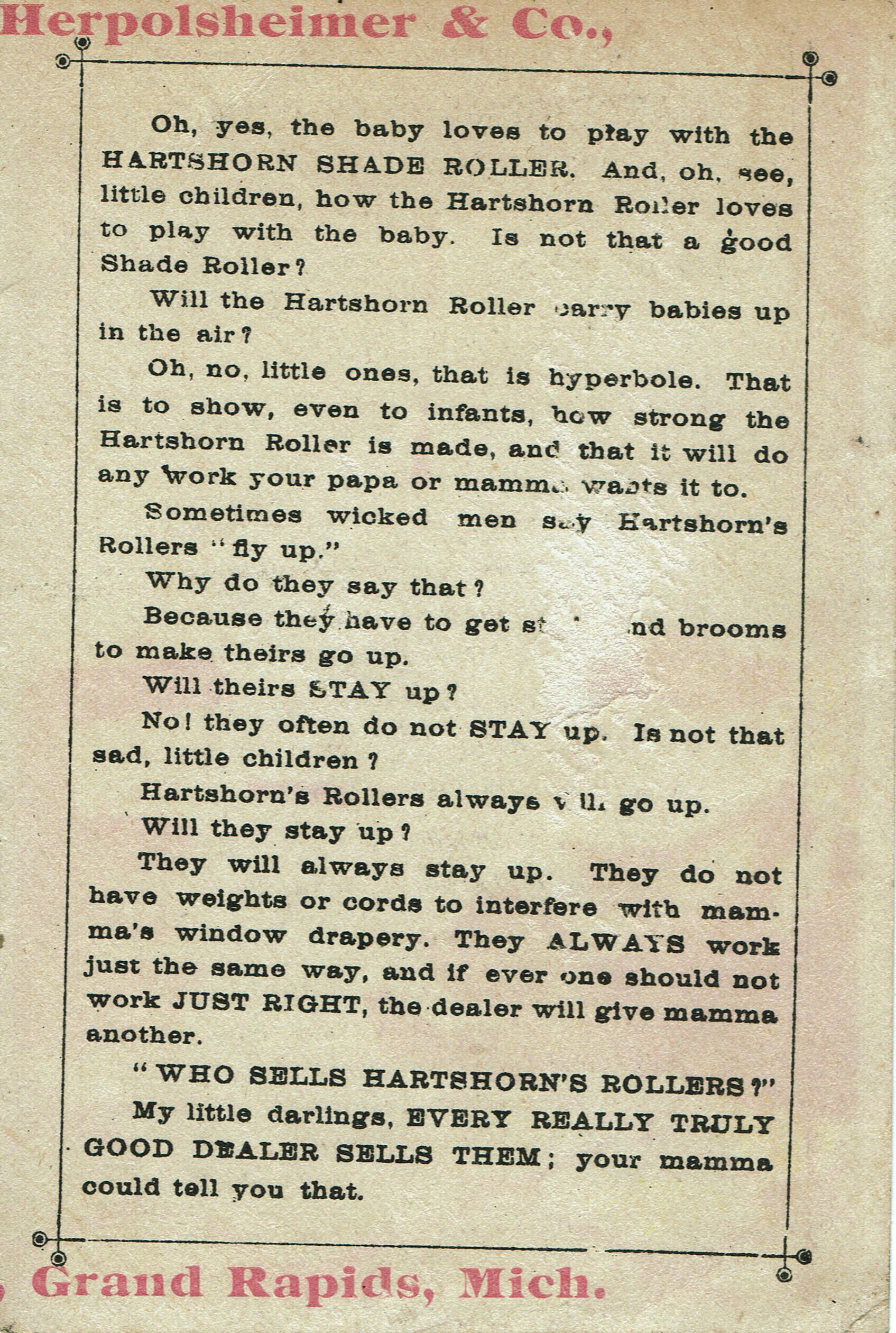 Hartshorn Shade Roller Advertising CardEntry/Object ID
