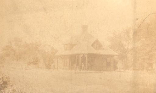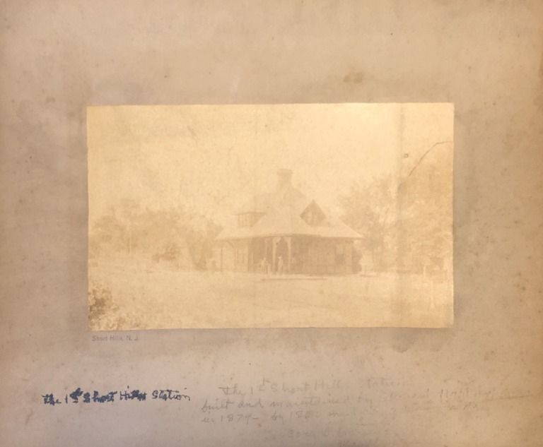 Copy of Short Hills Train Station Photograph from the Hartshorn Family collection. Handwritten notes on the matte say, "Built and maintained by Stewart Hartshorn in 1879. By 1880, he had two trains a day coming through the station."Collection
