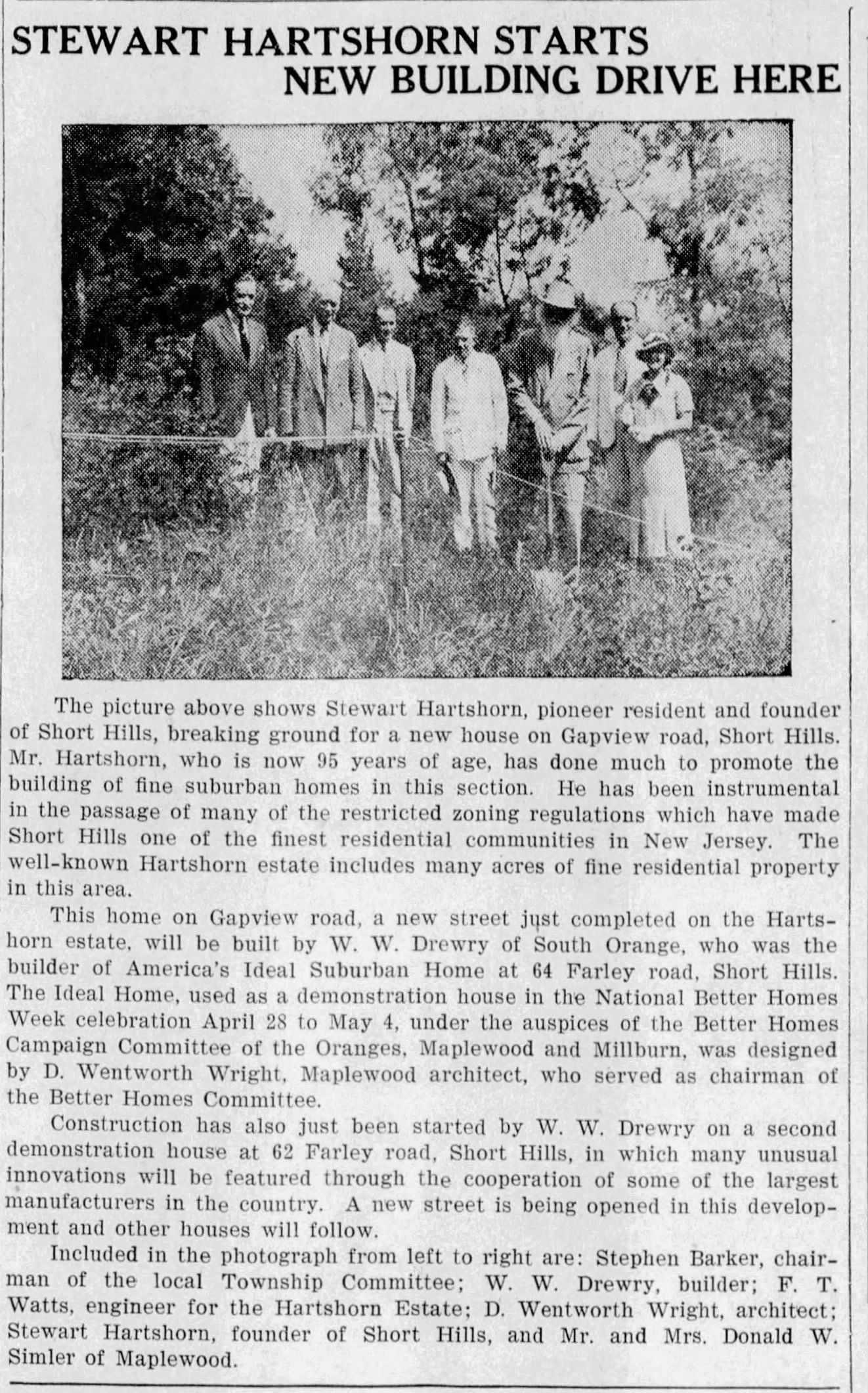 Hartshorn: Stewart Hartshorn at Groundbreaking Ceremony of 10 Gap View Road, 1935Entry/Object ID