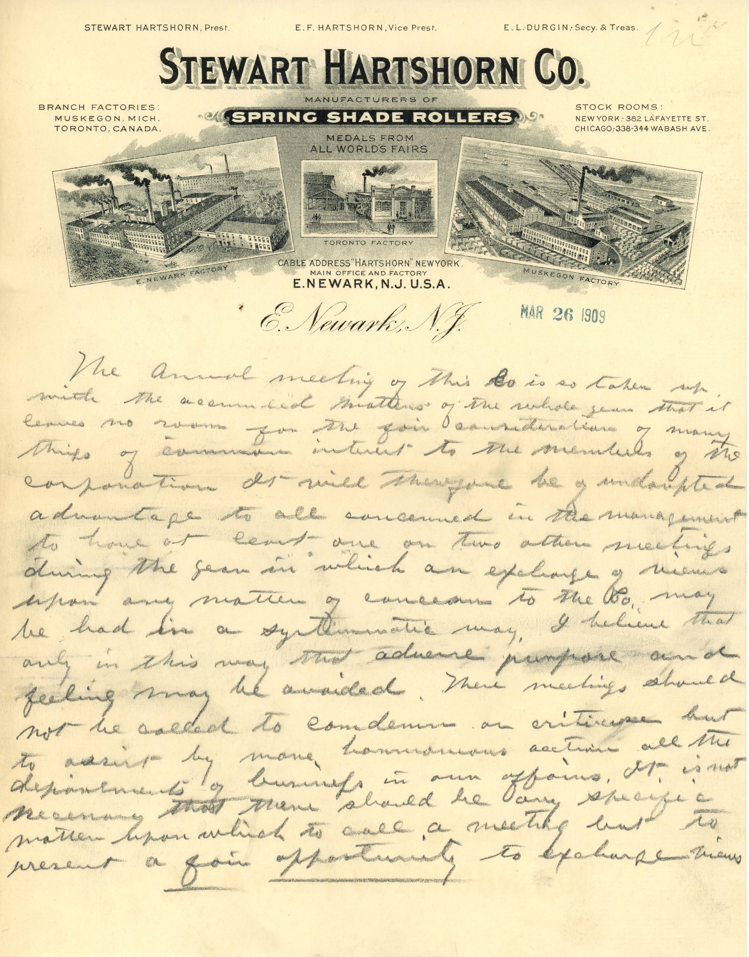 Stewart Hartshorn Co. written accounts ranging detailing miscellaneous information (from personal to business accounts) and board minutes from the Stewart Hartshorn Company, Inc. Includes handwritten articles of incorporation.Acquisition