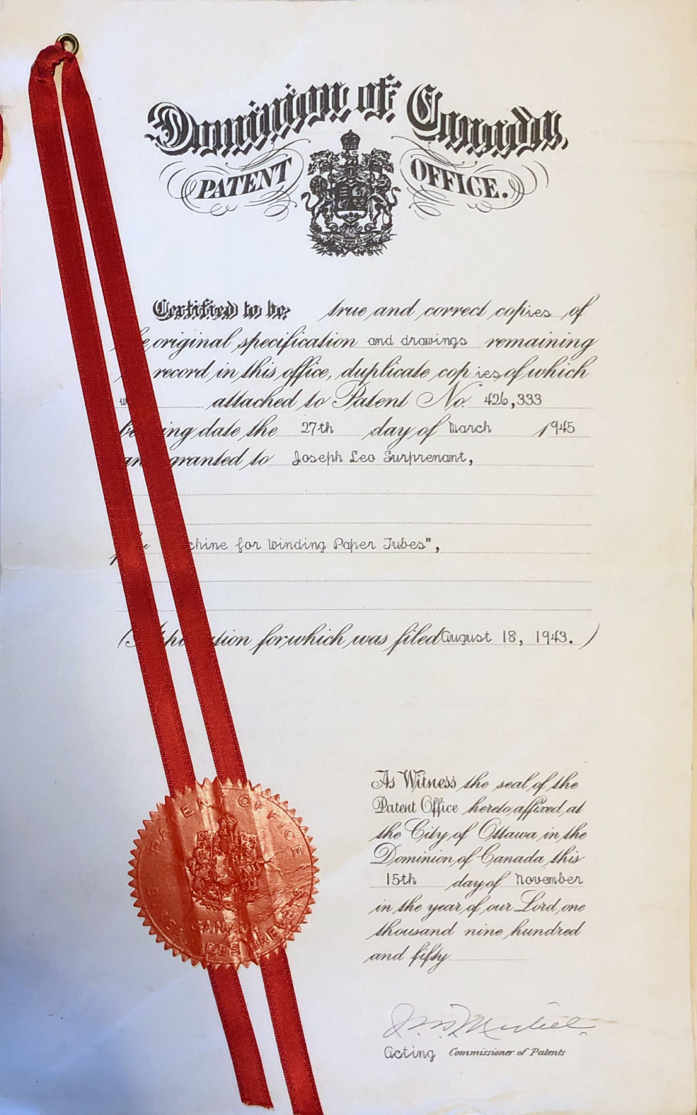 Three patents ranging from 1943 - 1952 issued to the Stewart Hartshorn Co.Acquisition