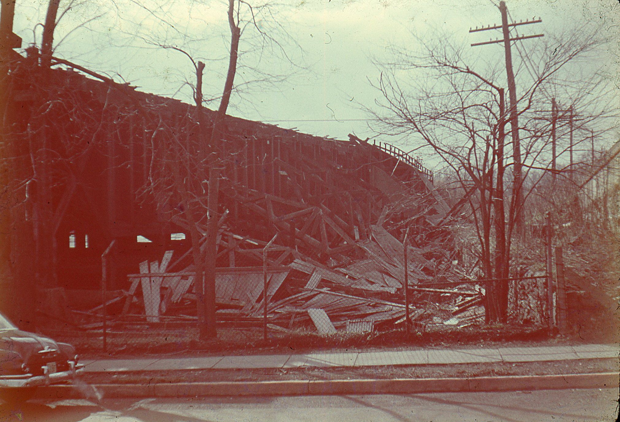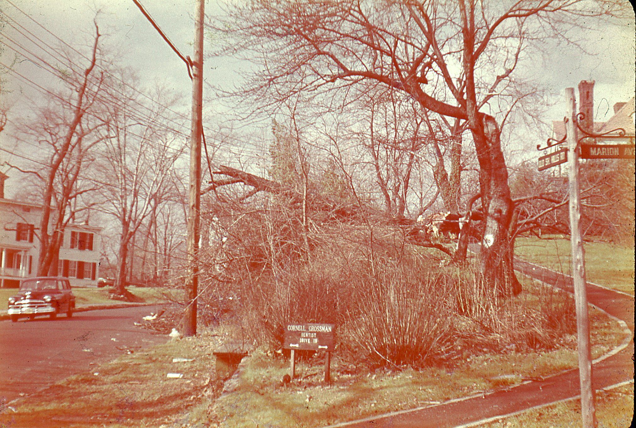 10 Photographs of the damage following the the massive Hurricane that hit Millburn November 24-25, 1950. The hurricane brought 100 mile/hour winds and, according to the Millburn-Short Hills Item, damaged every building in the township. Power and phone service was out for 80% of the township for at least a day and was still out for 30% of the township for over a week.Photograph Details