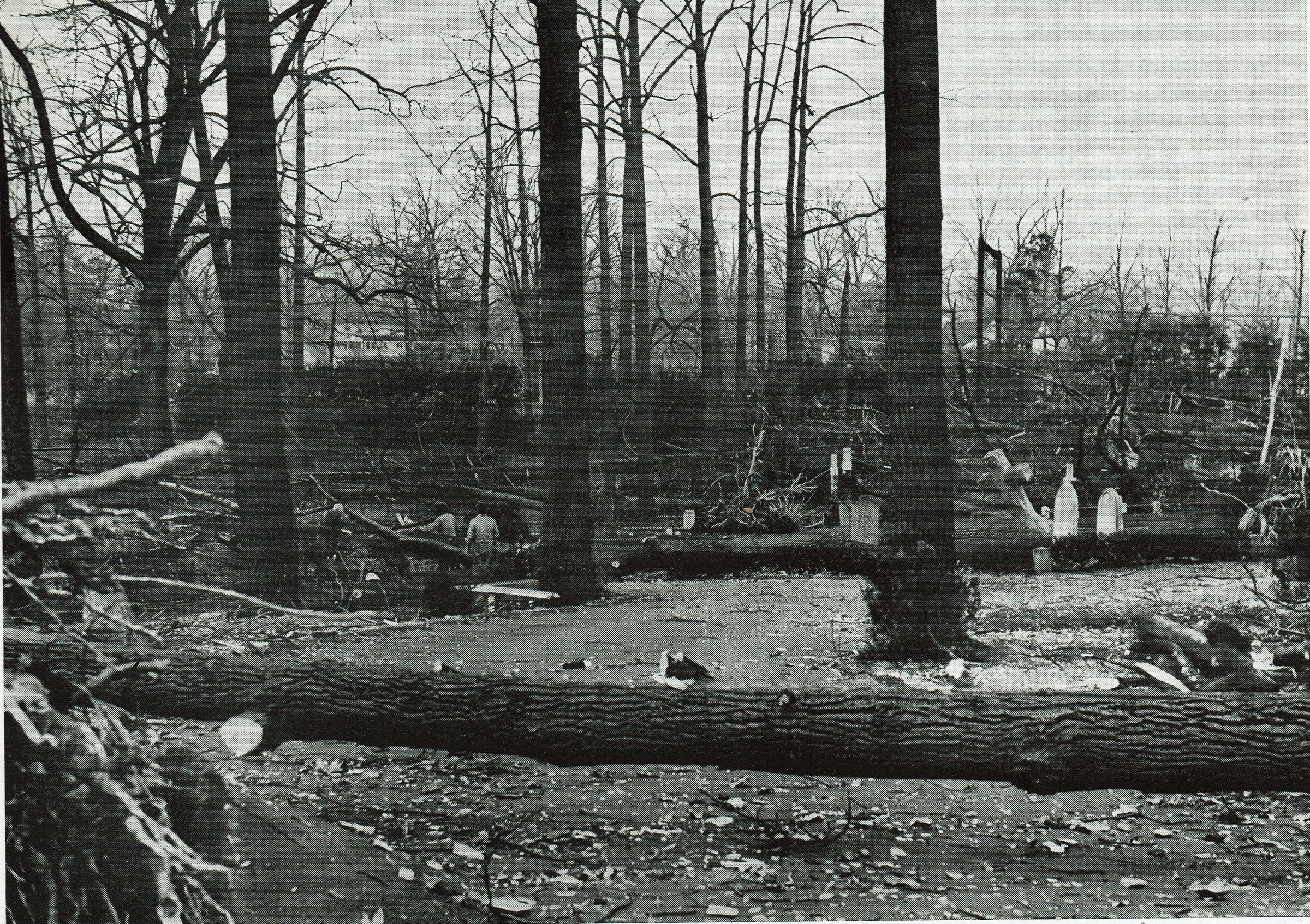 Photograph of St. Stephen's Cemetery following the November 25, 1950 hurricane, during which time 82 enormous trees were uprooted. Photograph appears in the Centennial Anniversary program for St. Stephen's Church, 1951.Acquisition