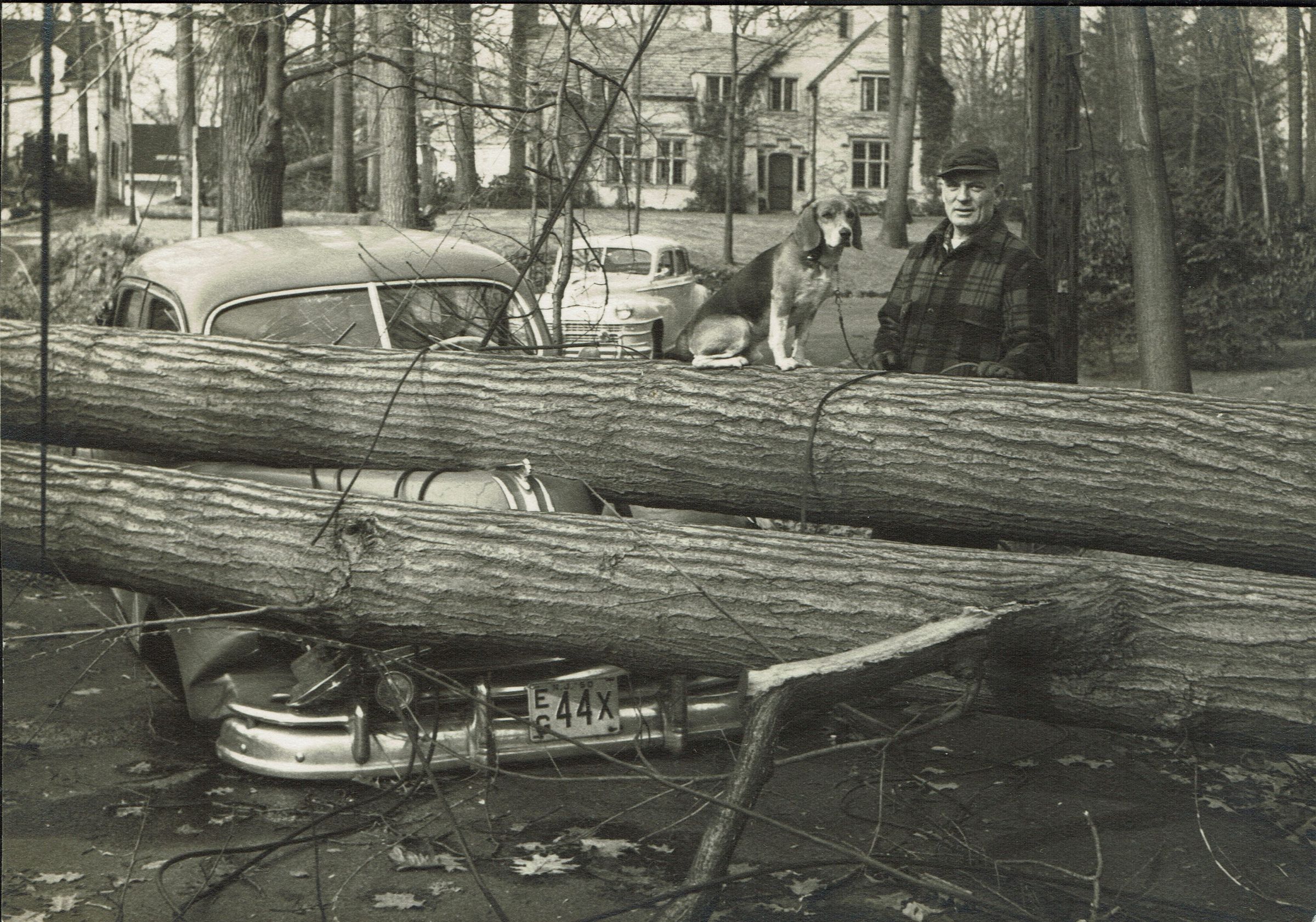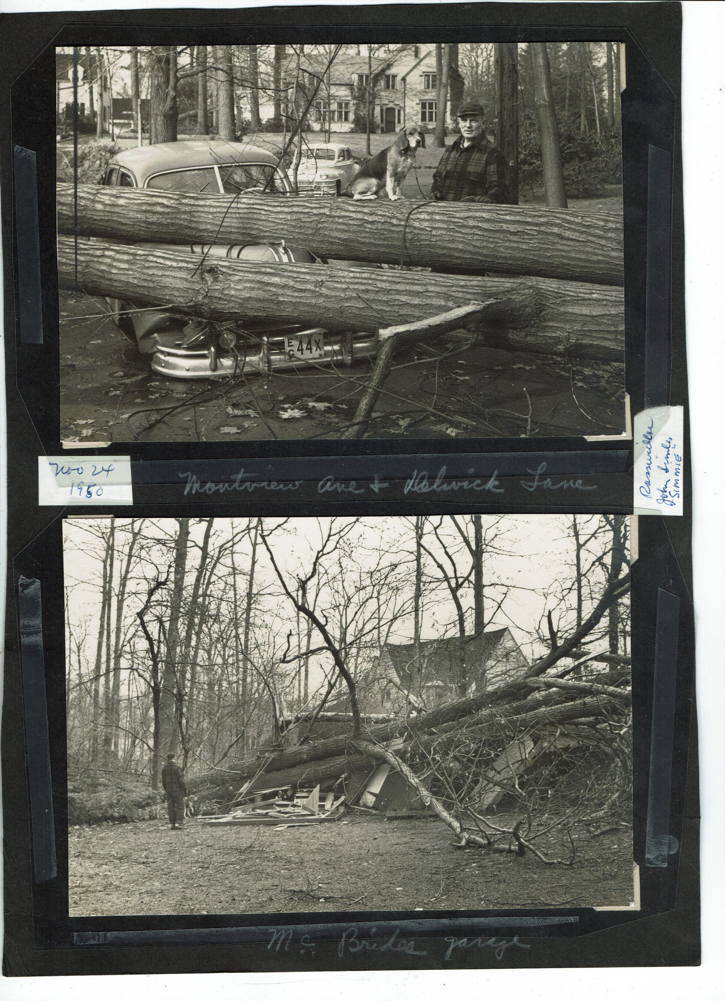 Photograph showing damage caused by the Hurricane that hit Millburn November 24, 1950. Described as Millburn's worst storm (as compared to those of 1938, 1944 & 1948), the hurricane brought 100 mile/hour winds and caused extensive damage to homes throughout the township. For a detailed description of the storm, see the November 30, 1950 issue of The Item.Acquisition