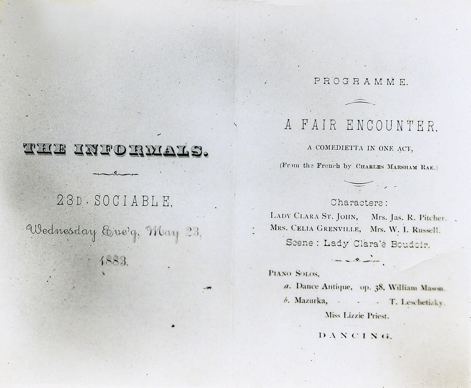 Programme for "A Fair Encounter," May 23, 1883