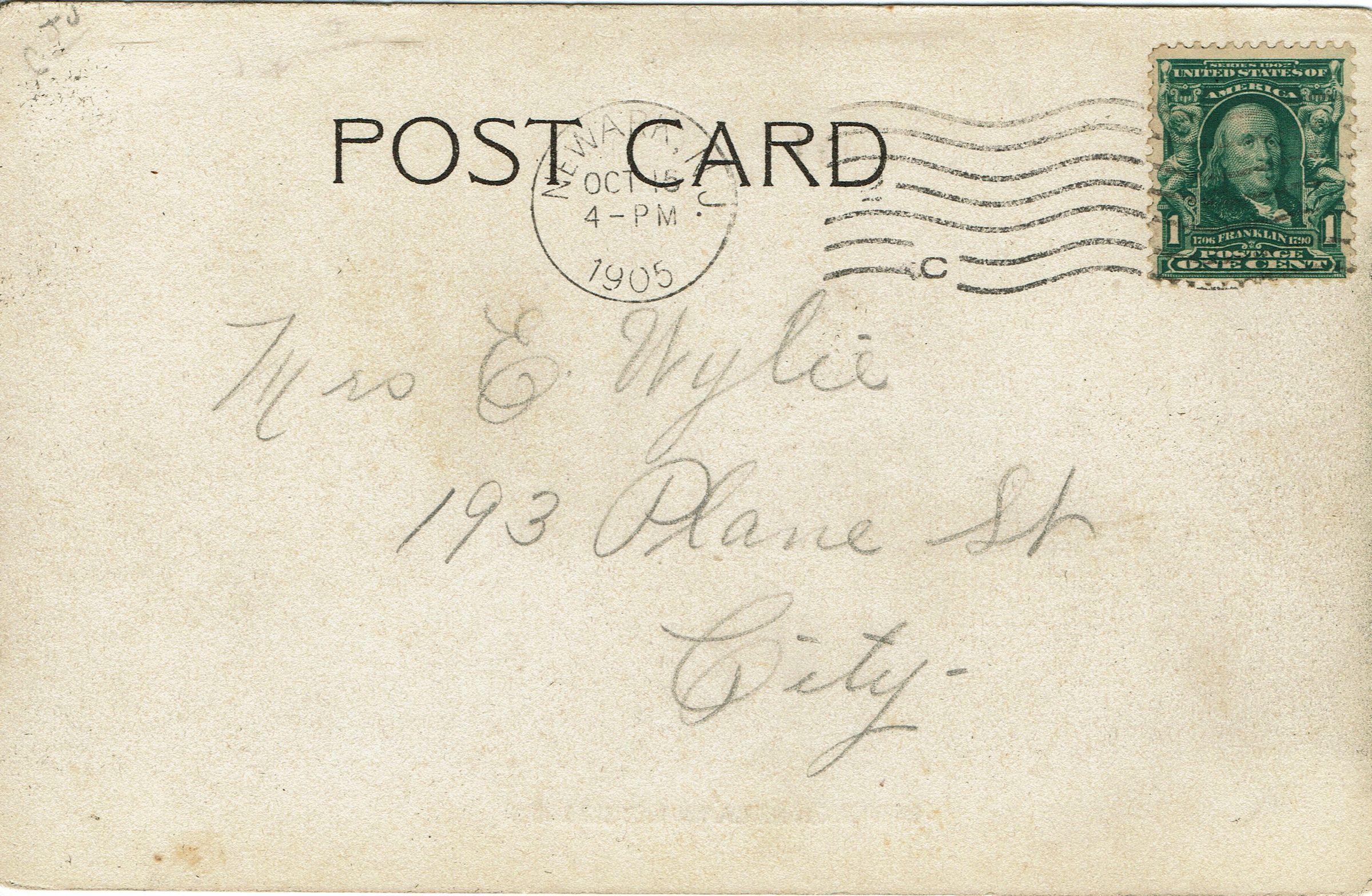 Postally used B&W photographic postcard of the Irvington-Millburn Bicycle Races, postmarked Newark, NJ Ocotber 15, 1905, 4:00 pm. Card is addressed to Mrs. E. Wylie, 193 Plane Street, City.Acquisition