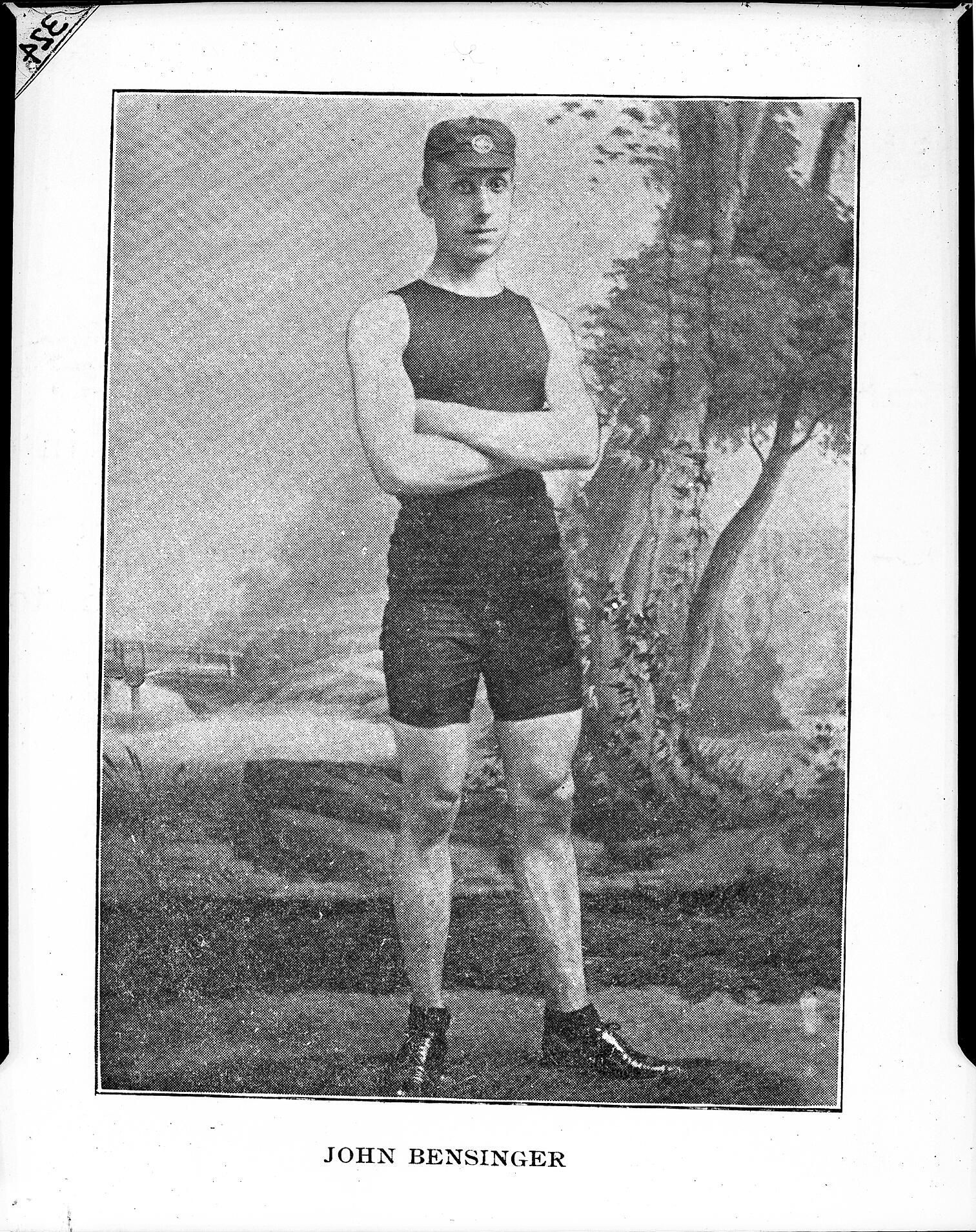 From the History of the Irvington-Millburn Road Races--May 30, 1900. Official Souvenir Program. Bensinger won the time prize in the race with the record time of 1:31:43 from the Seven Number Mark.Collection