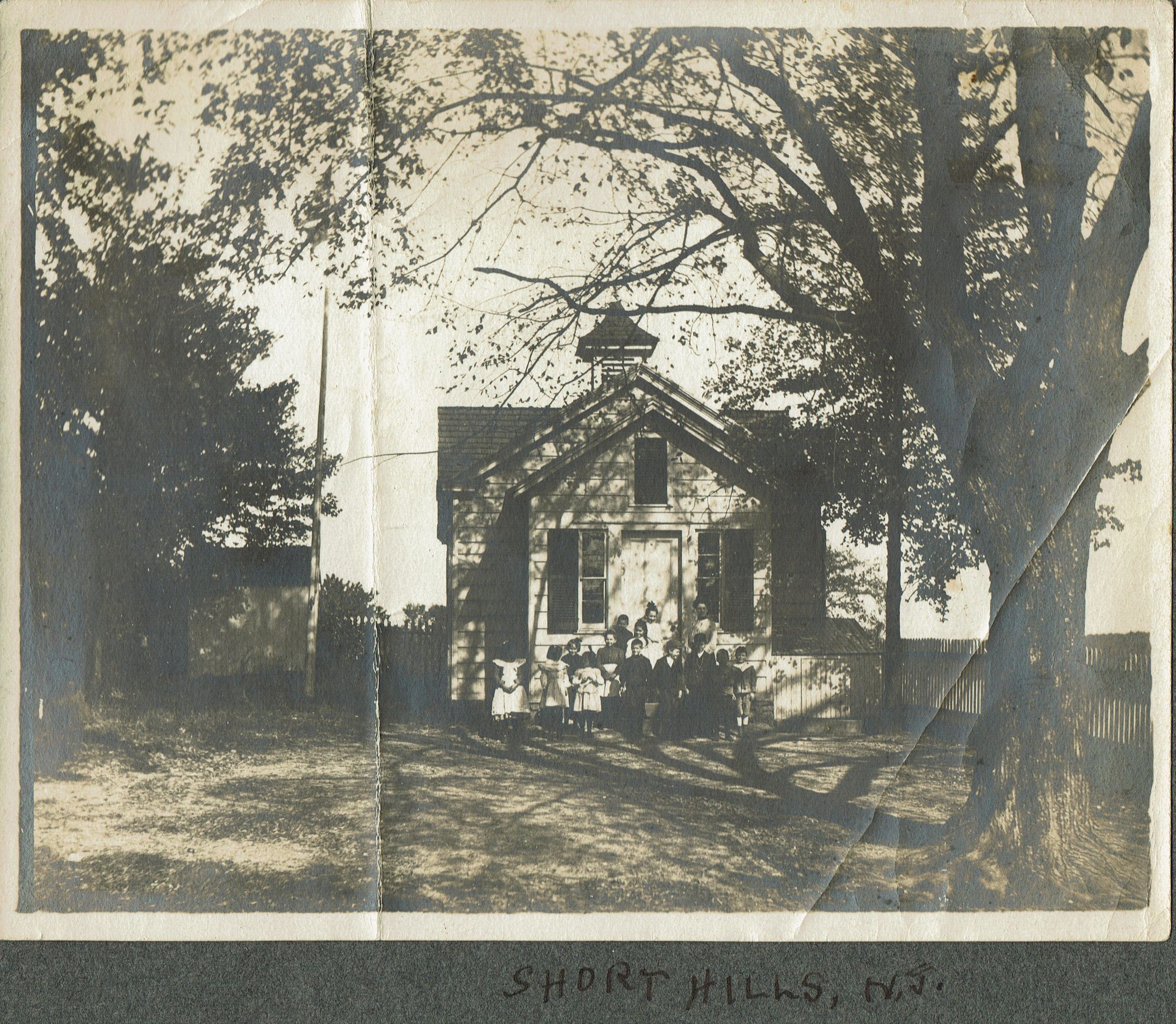 Photograph of the Jefferson school at Old Short Hills Road and Parsonage Hill Road with students and teacher standing outside. The photograph appears in an album with pictures from other locations including Colorado Springs, Fairfield and South Norwalk Connecticut dating to c. 1880-1920. Individuals identified in other photos include: Mary Housknecht, Lydia Pfleuger and Dorothy Werner. Locations for many of the photographs are unknown.Acquisition