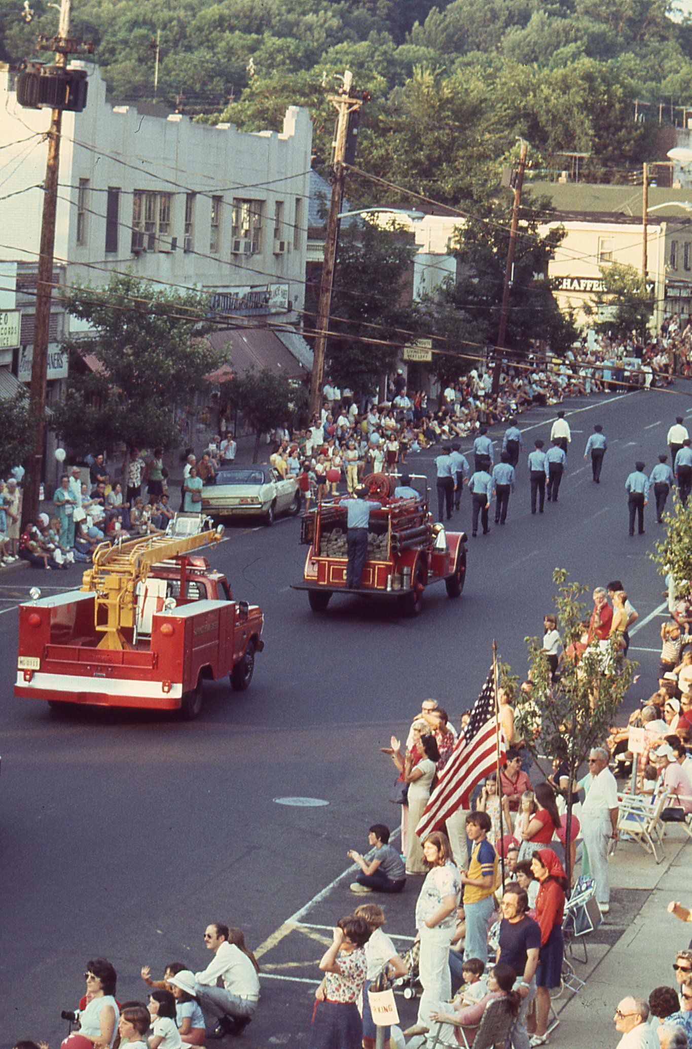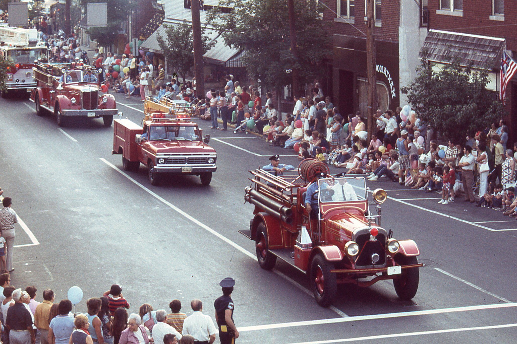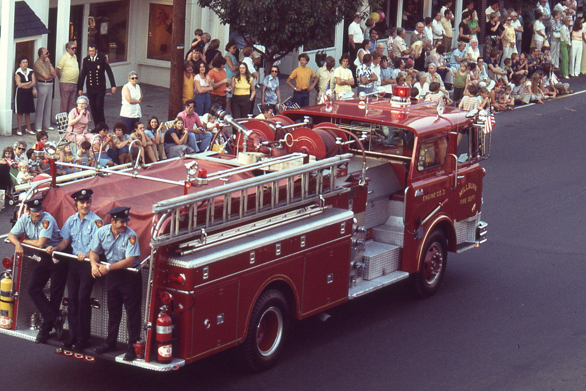 Photographs taken by Owen Lampe of Firefighters and equipment from the Millburn Fire Department and other towns in the July 2, 1976 parade on Millburn Avenue, celebrating the American Bicentennial.Photograph Details