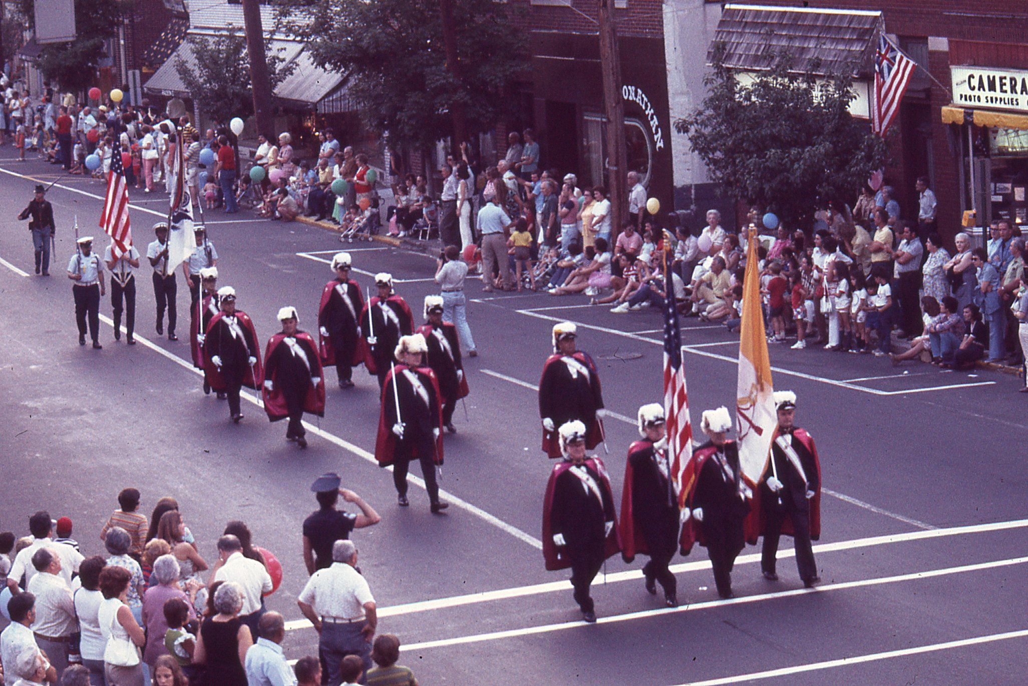 Photographs taken by Owen Lampe of Knights of Columbus in the July 2, 1976 parade on Millburn Avenue, celebrating the American Bicentennial.Photograph Details