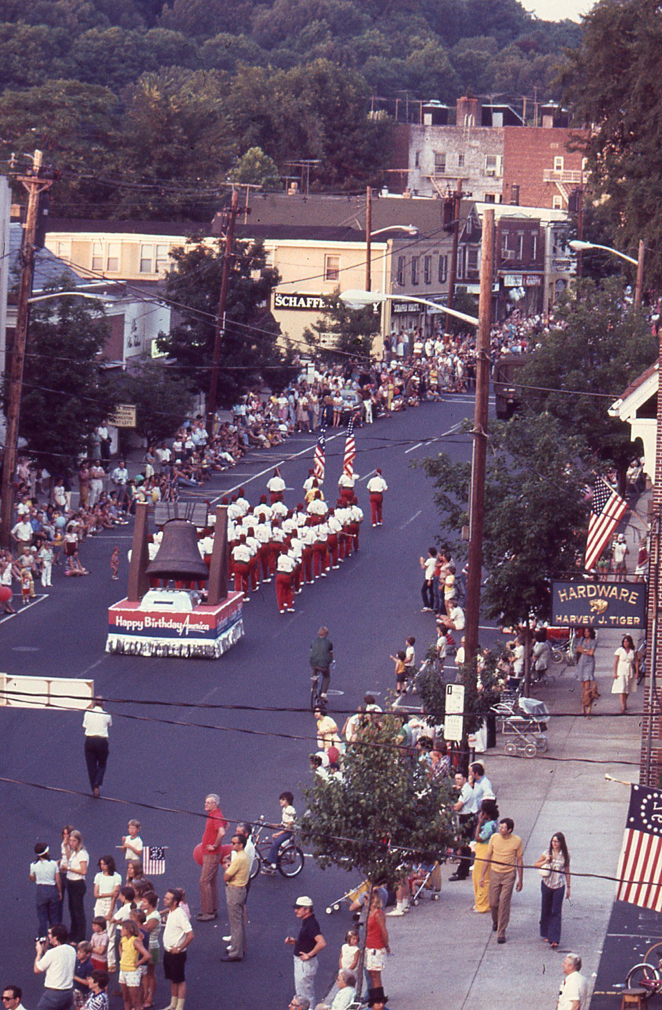 Photograph taken by Owen Lampe of Continental Lodge 190, F & AM (Ancient Free and Accepted Masons) Liberty Bell Float in the July 2, 1976 parade on Millburn Avenue, celebrating the American Bicentennial.Photograph Details