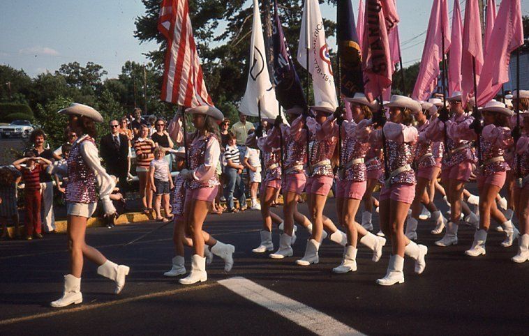 Photographs of marching bands and twirlers in Springfield in route to Millburn during the Bicentennial Parade on July 2, 1976.Photograph Details