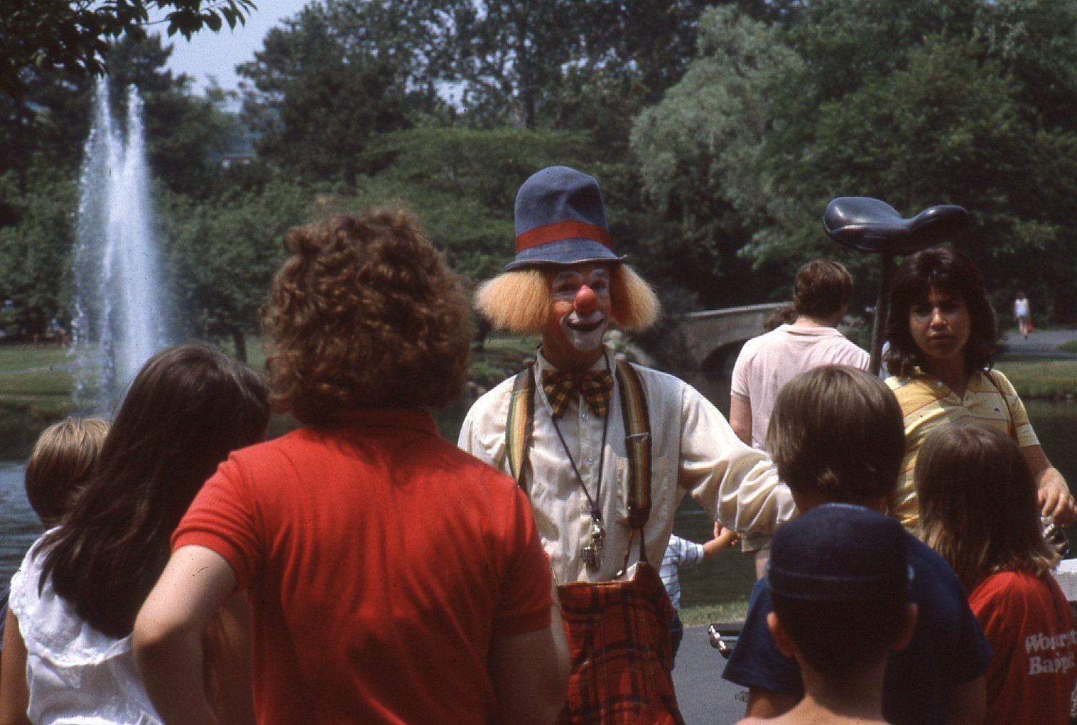 Photographs from the Millburn Recreation Department of the July 1983 Parade in Taylor Park featuring clowns and bikes.Photograph Details