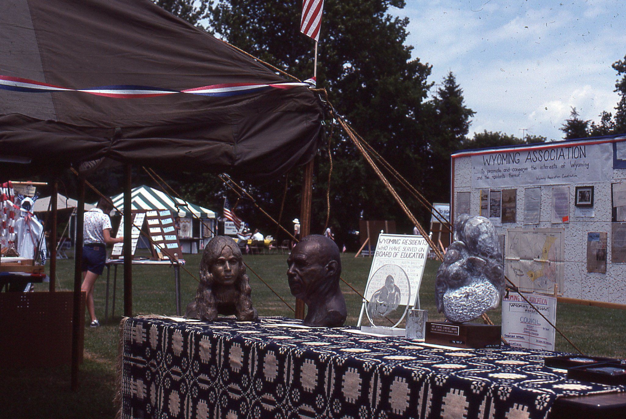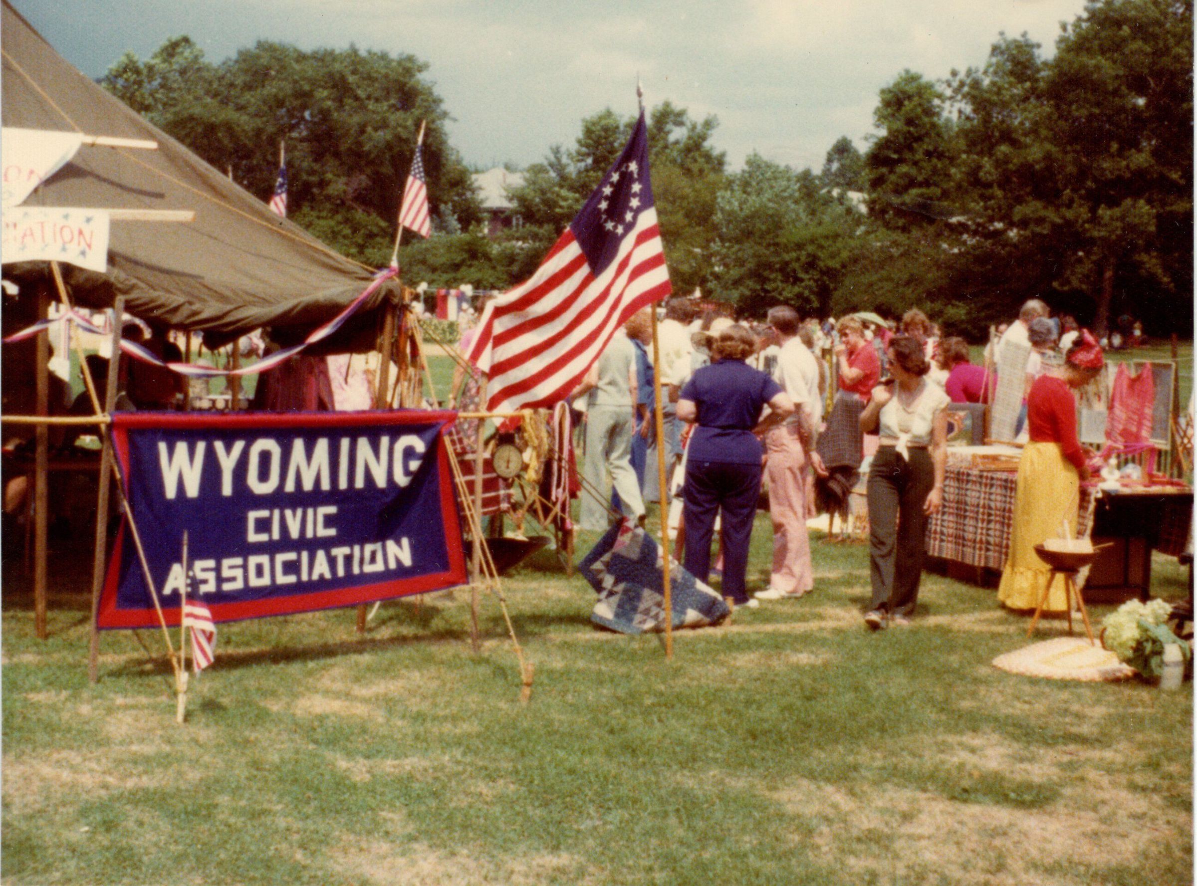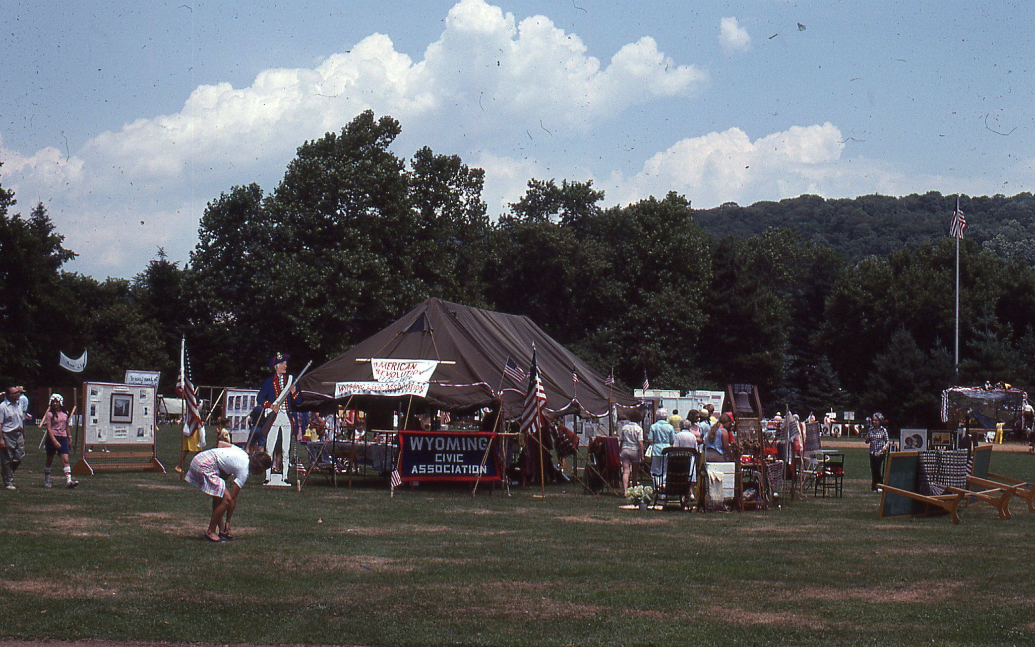 Photographs of the Wyoming Civic Association tent and displays in Taylor Park during July 3 Community Fair in honor of the Bicentennial.Photograph Details
