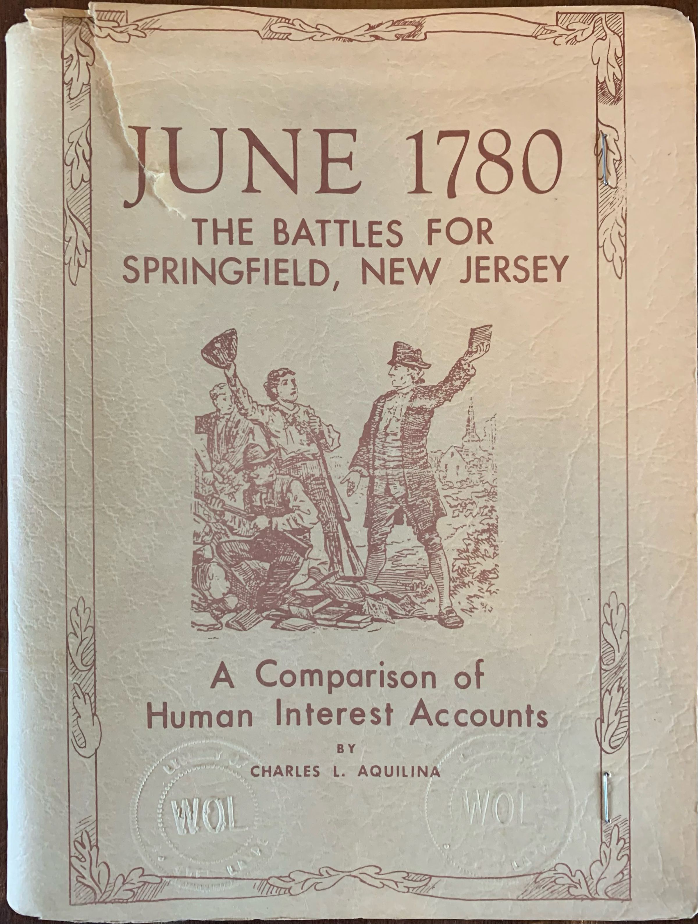 Charles L. Aqualina, June 1780, The Battles for Springfield, New Jersey. Published in September 1979 as part of the Bicentennial of the Battle of Springfield commemoration. From the collection of Owen Lampe.