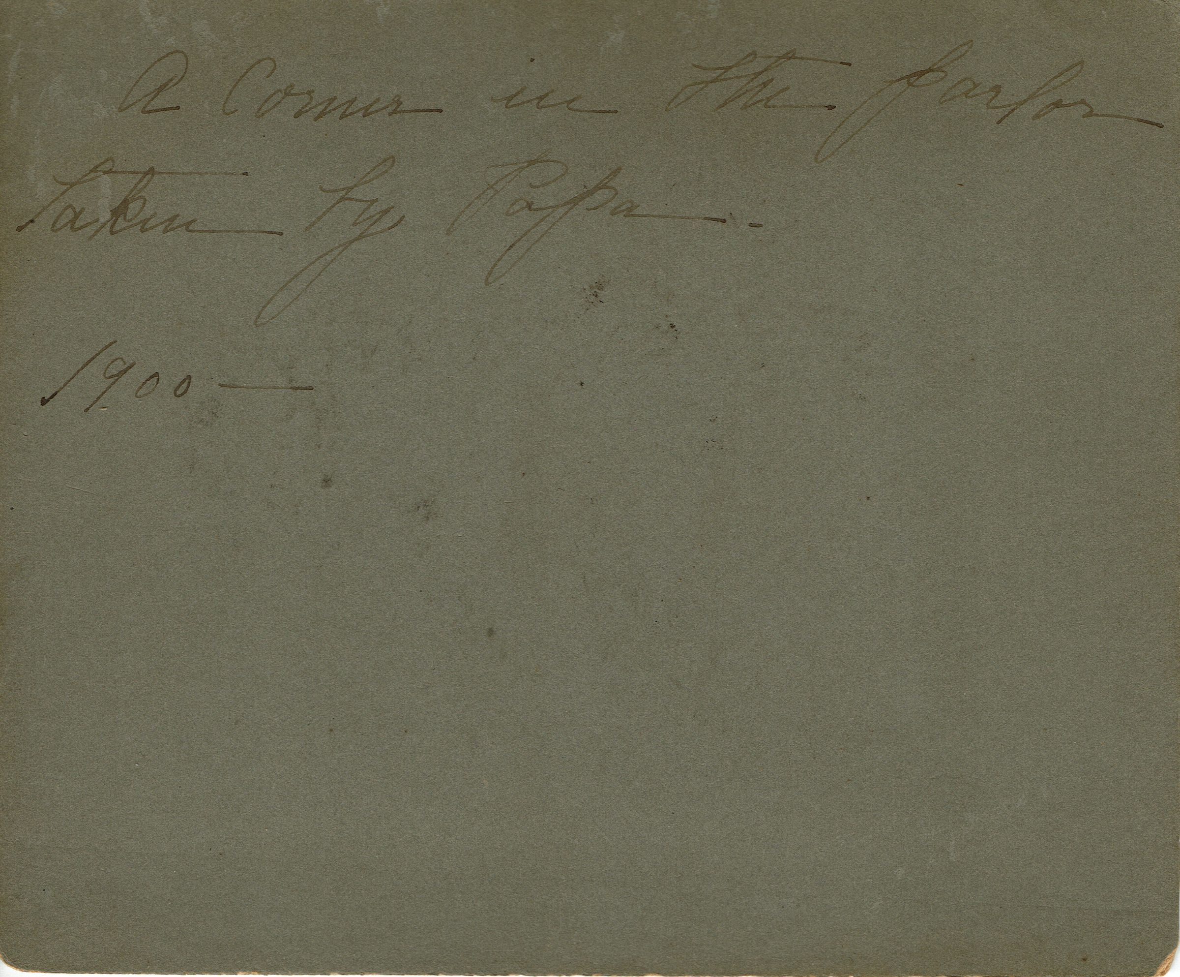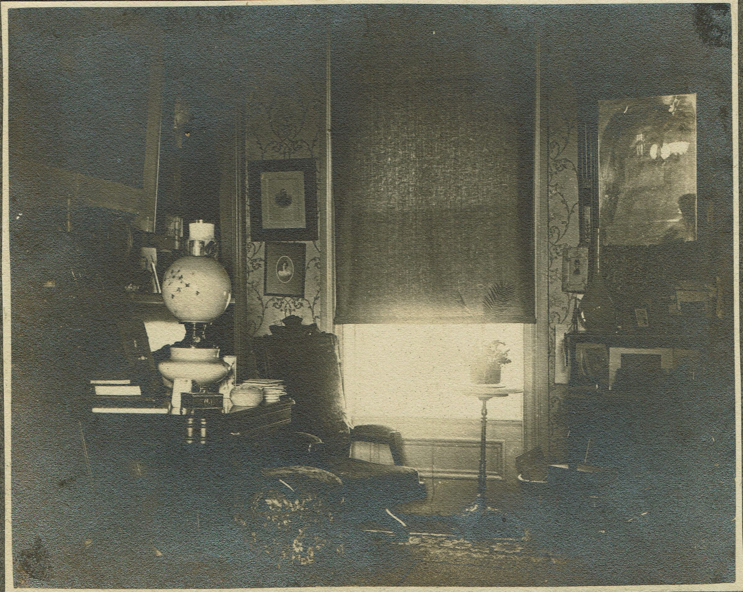 Photograph of the parlor of the Edward and Elizabeth Kellogg house. Inscription on verso reads, "A corner in the parlor, taken by Papa, 1900."Collection
