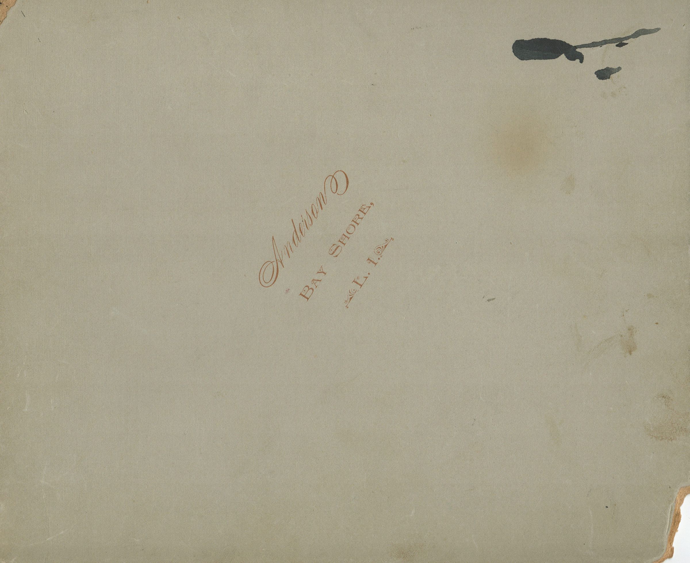 Unidentified photograph from the Kellogg collection, featuring family members gathered on a front porch. Verso of picture reads Anderson, Bay Shore, Long Island. The attire appears to date from the early 1900s.Collection