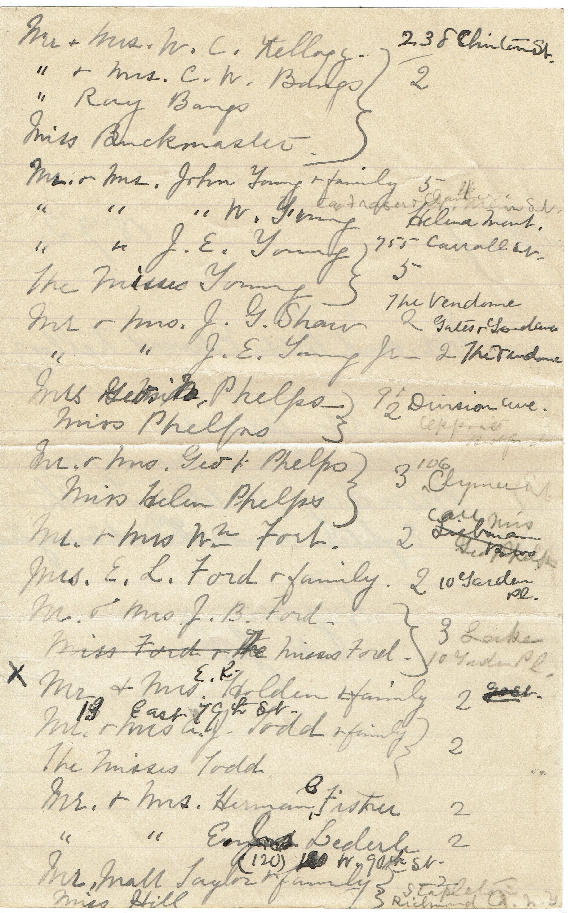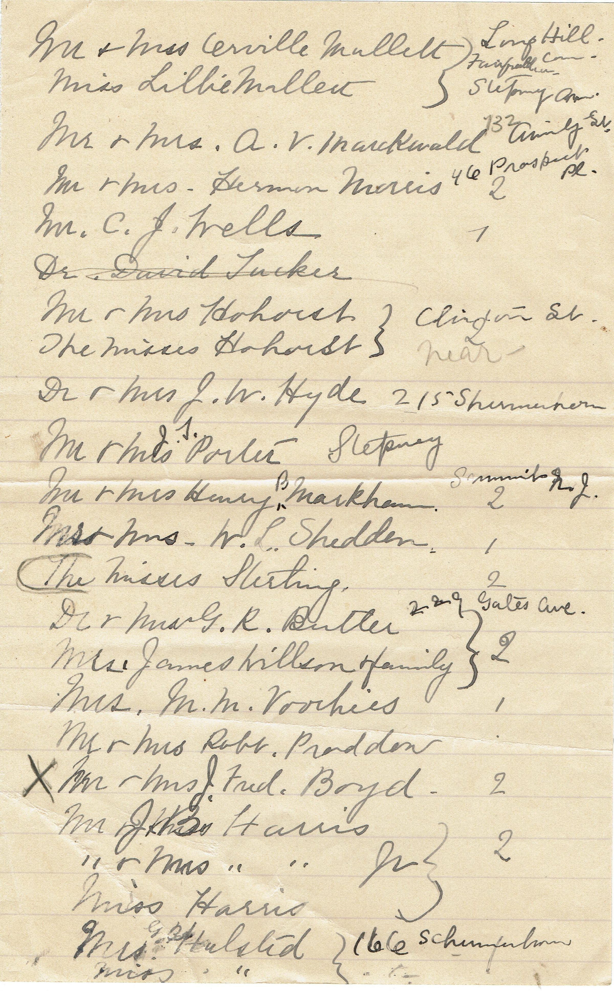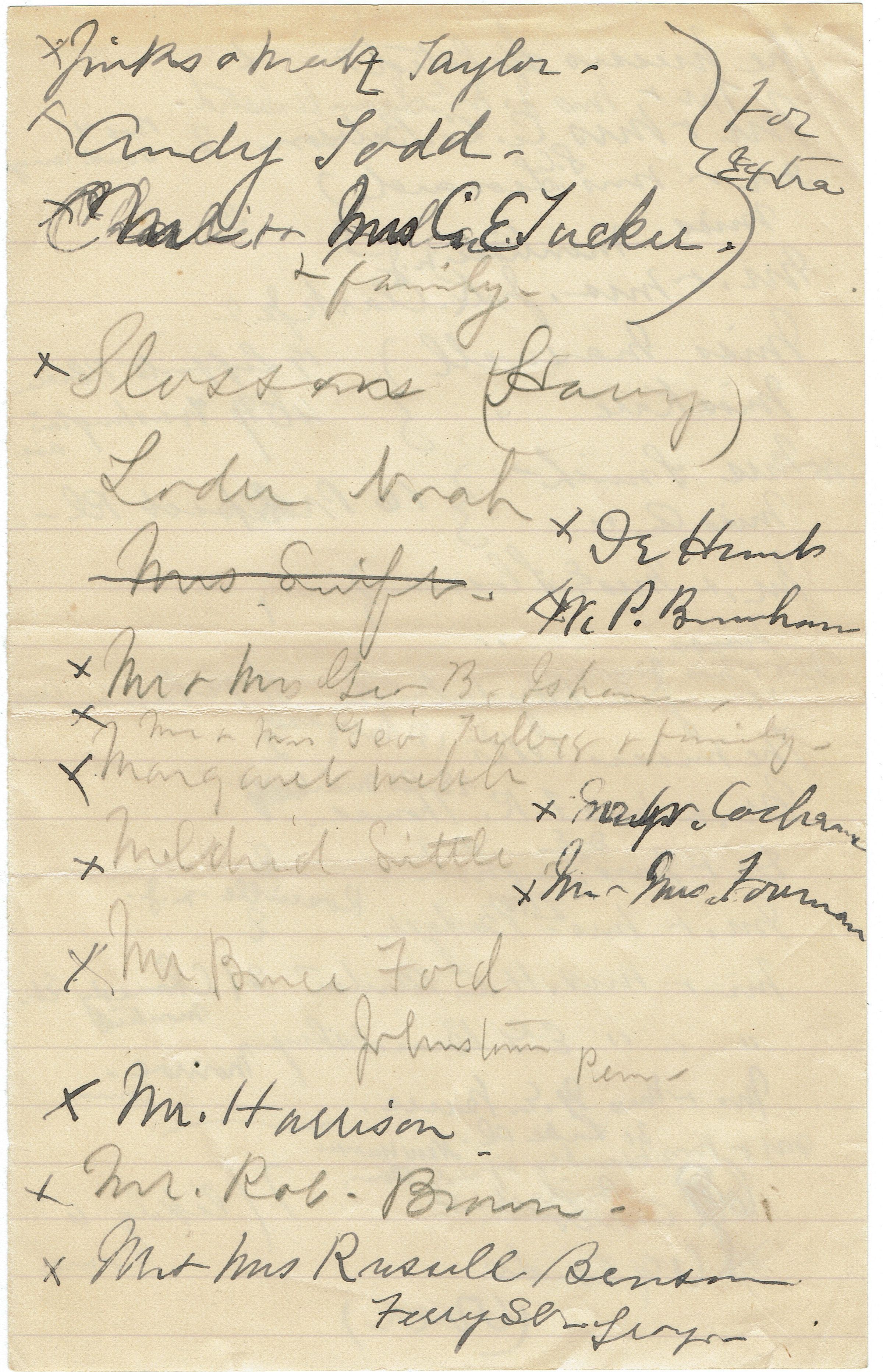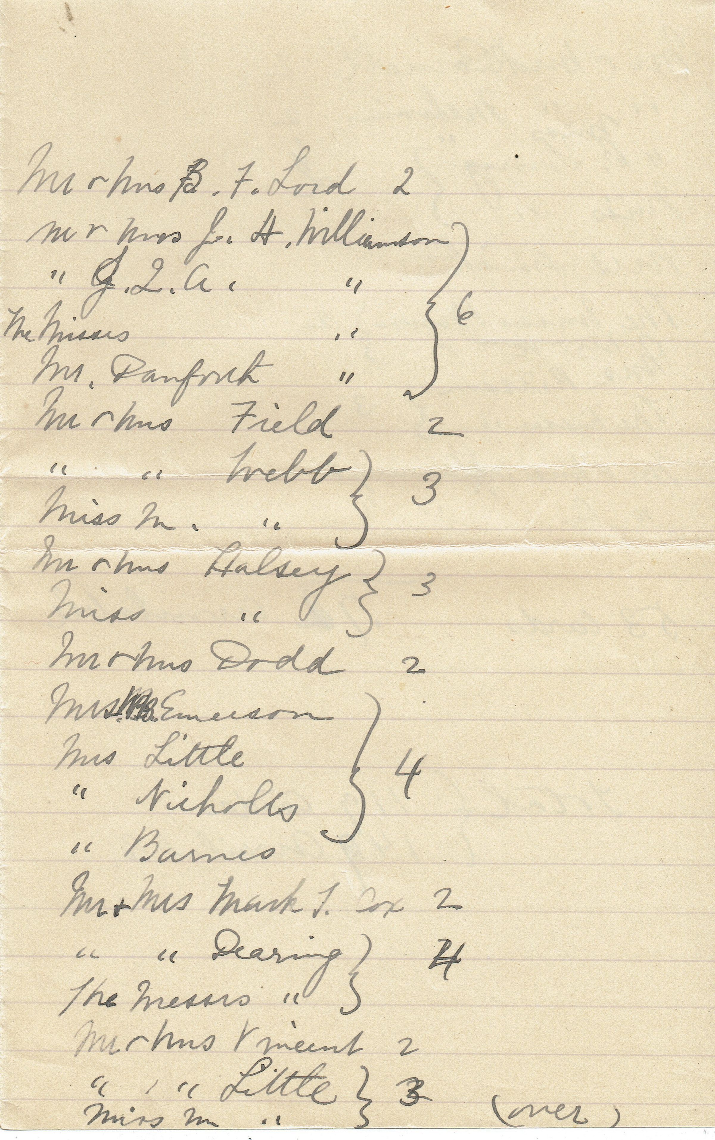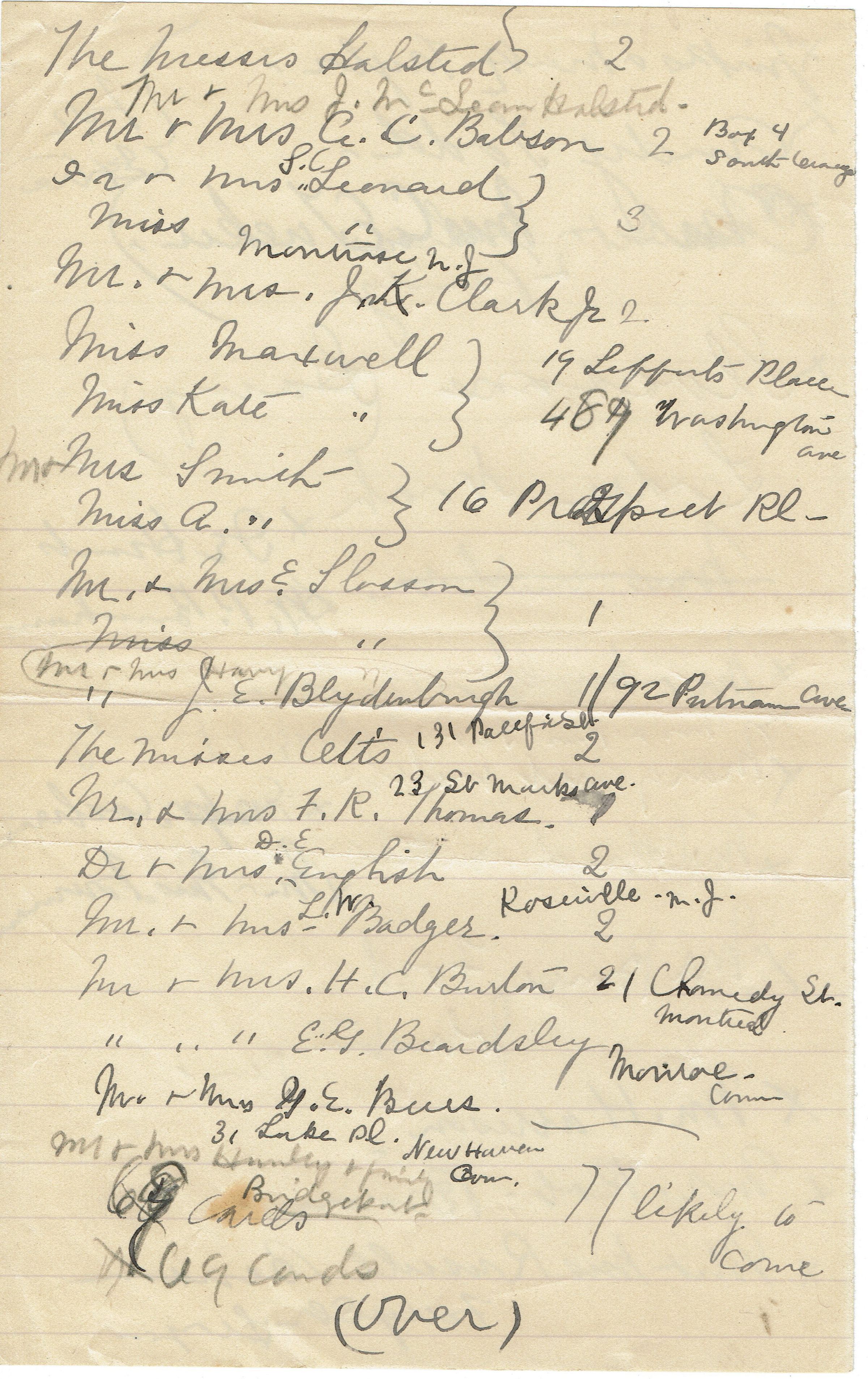 8 page hand-written list of people invited to the Kellogg's 15th Wedding Anniversary Celebration on October 10, 1892.Collection