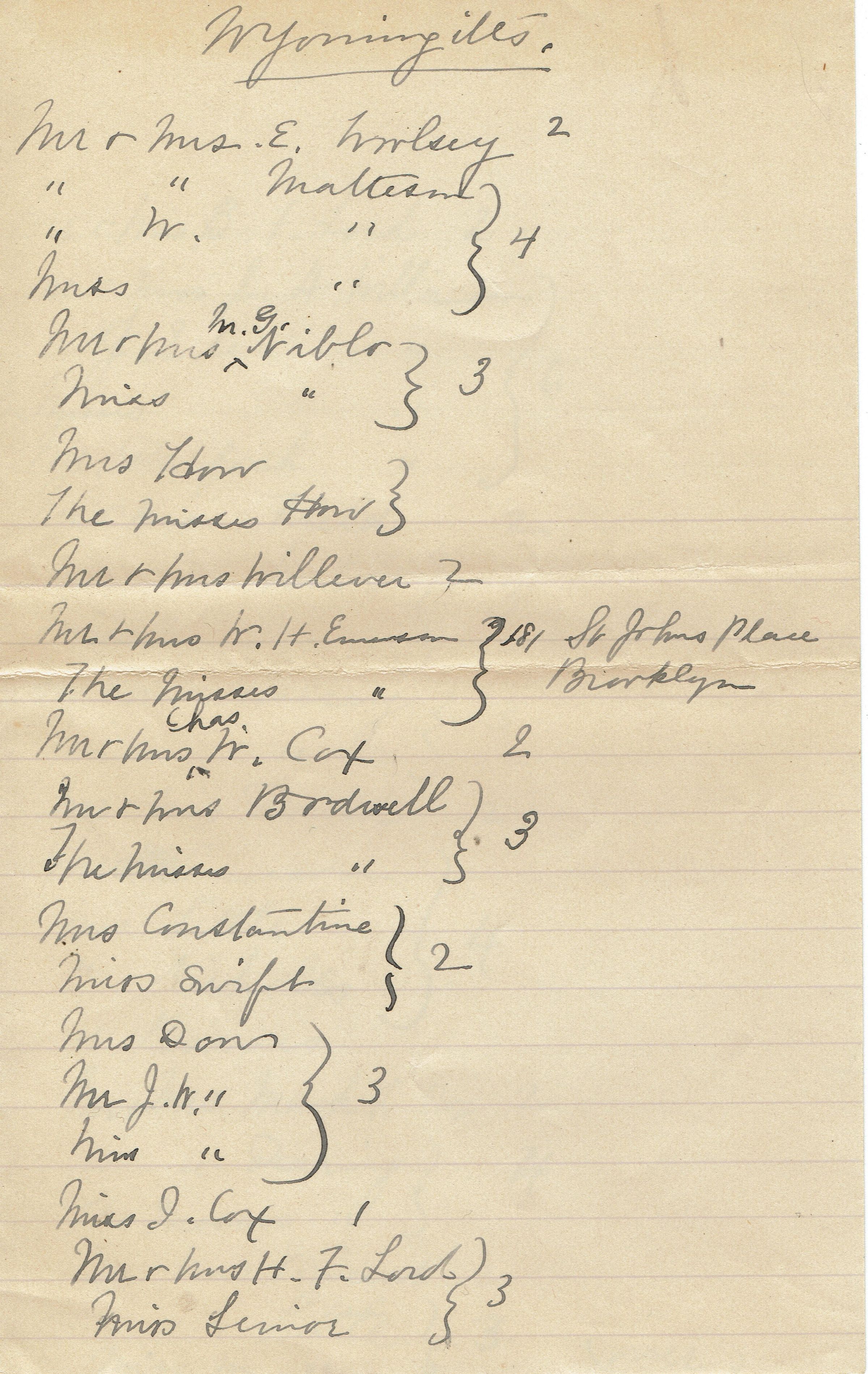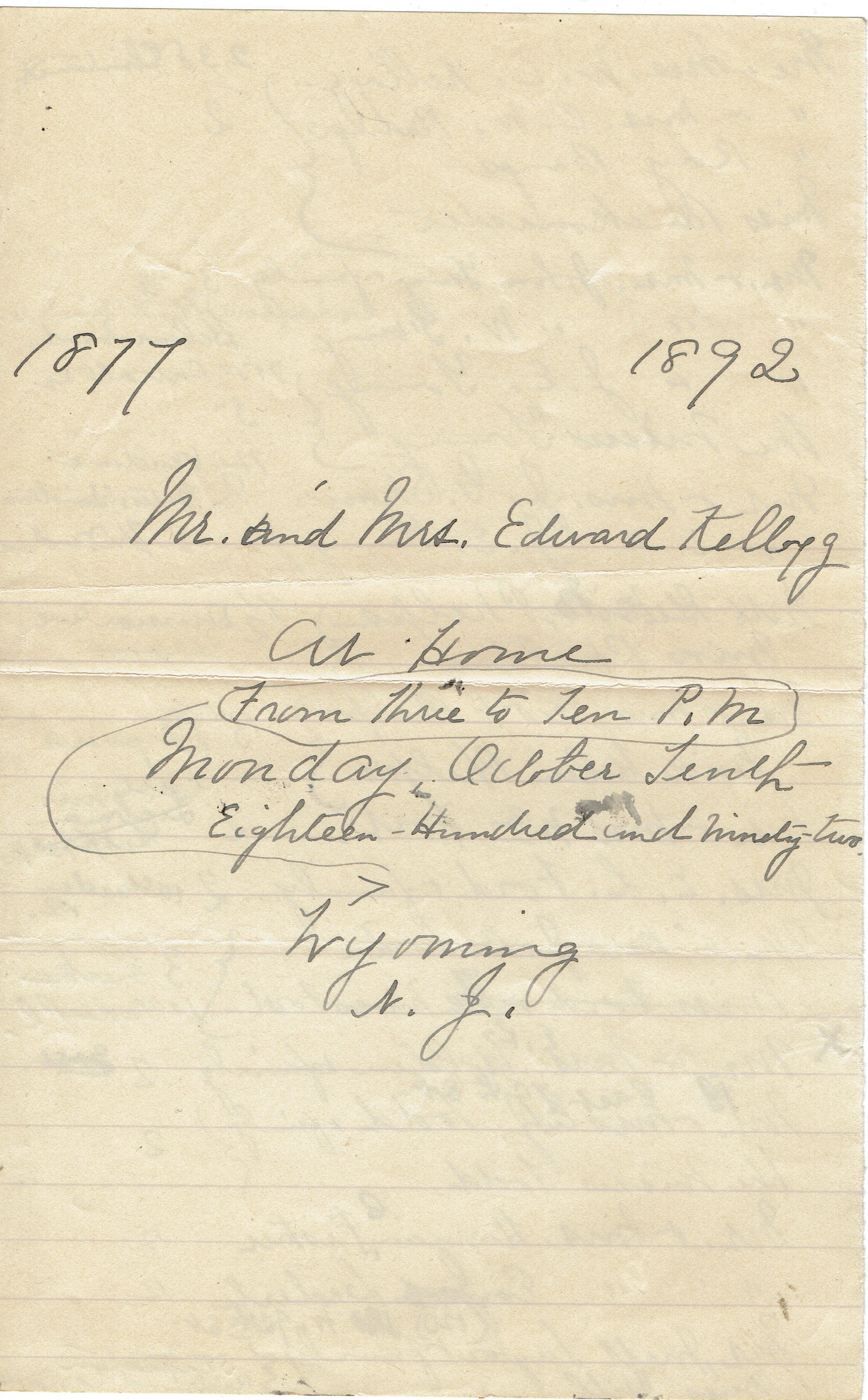 Kellogg: Guest List for Kellogg 15th Wedding Anniversary Celebration, 1892Entry/Object ID
