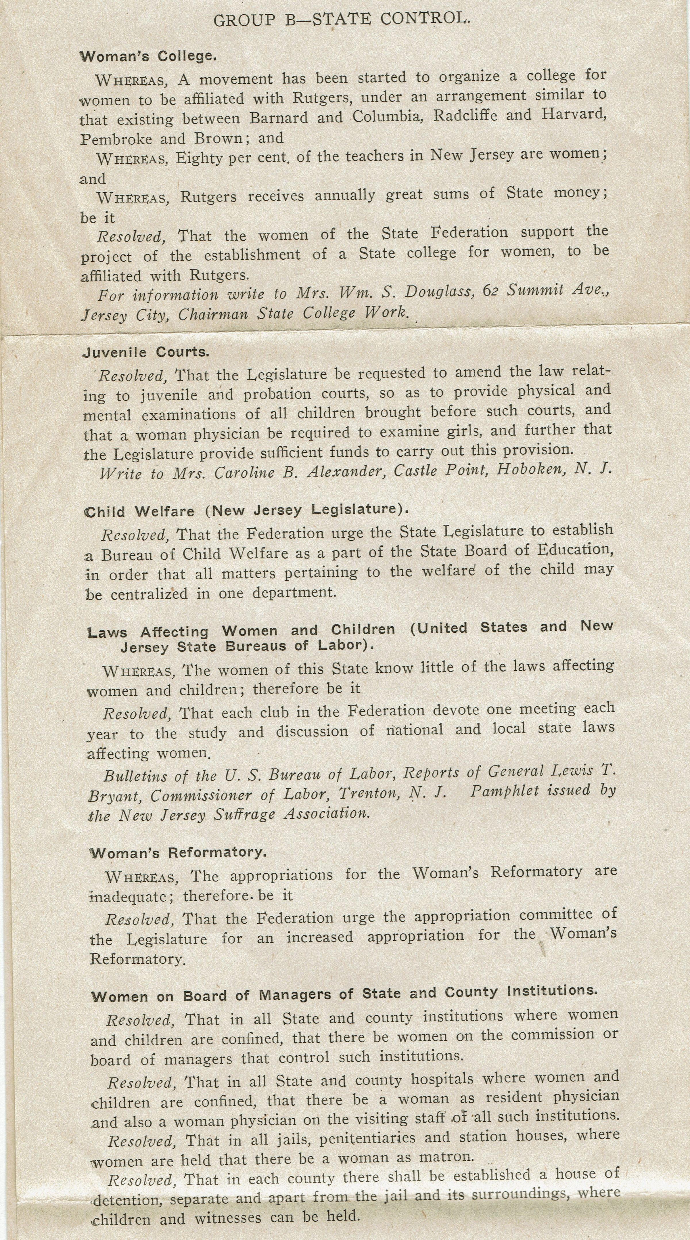 Kellogg: New Jersey State Federation of Women's Clubs Document, c. 1909-1911Entry/Object ID