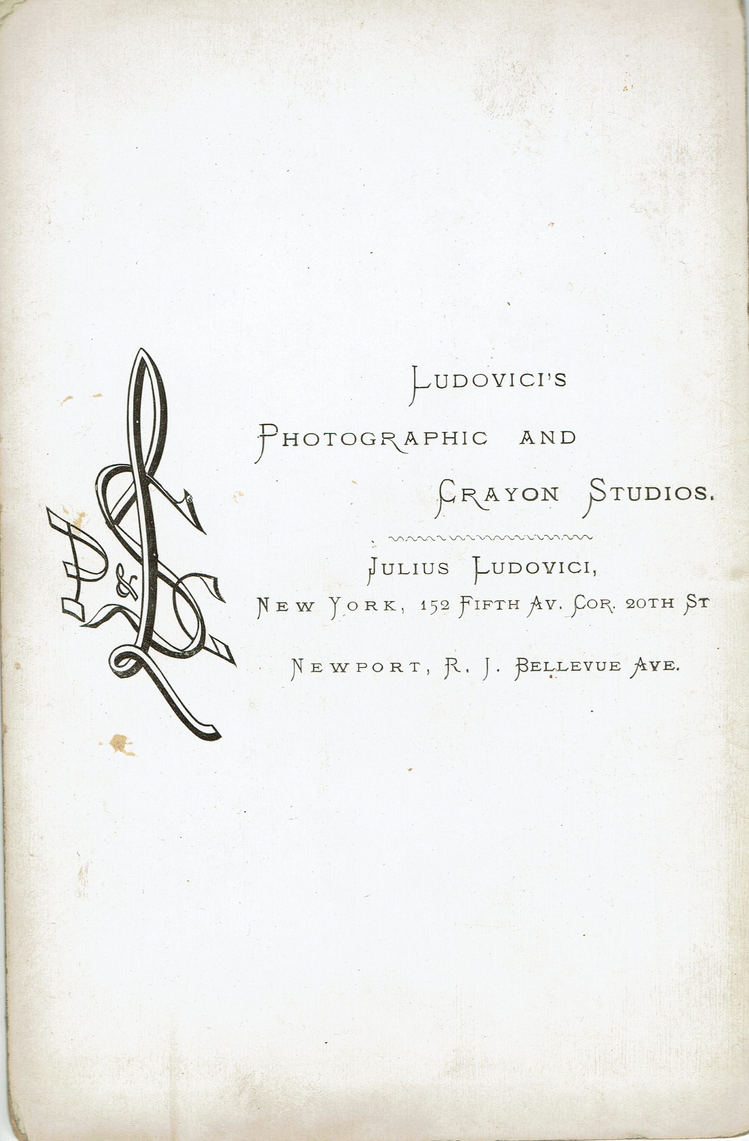 Verso of card reads: "Ludovici's Photographic and Crayon Studios. Julius Ludovici, New York, 152 Fifth Avenue, Corner 20th Street; Newport, R.I. Bellevue Ave.Photograph Details
