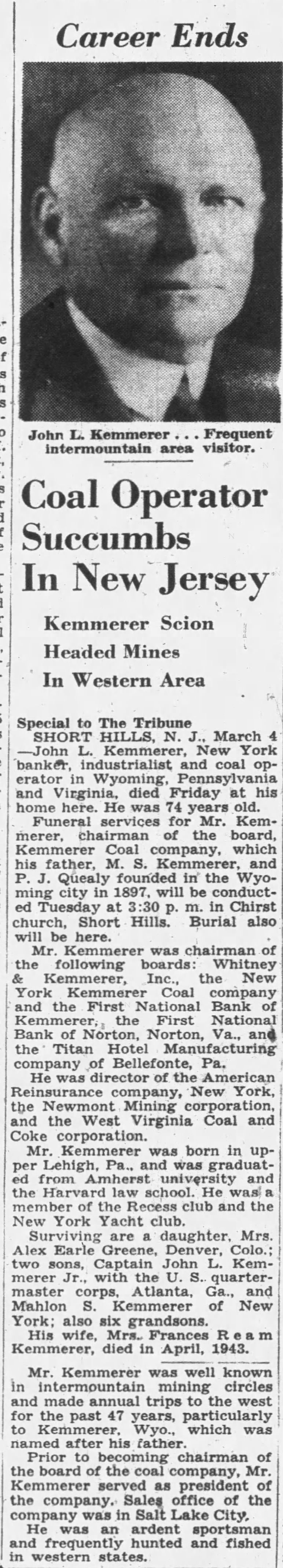 Kemmerer: John L. Kemmerer PortraitEntry/Object ID