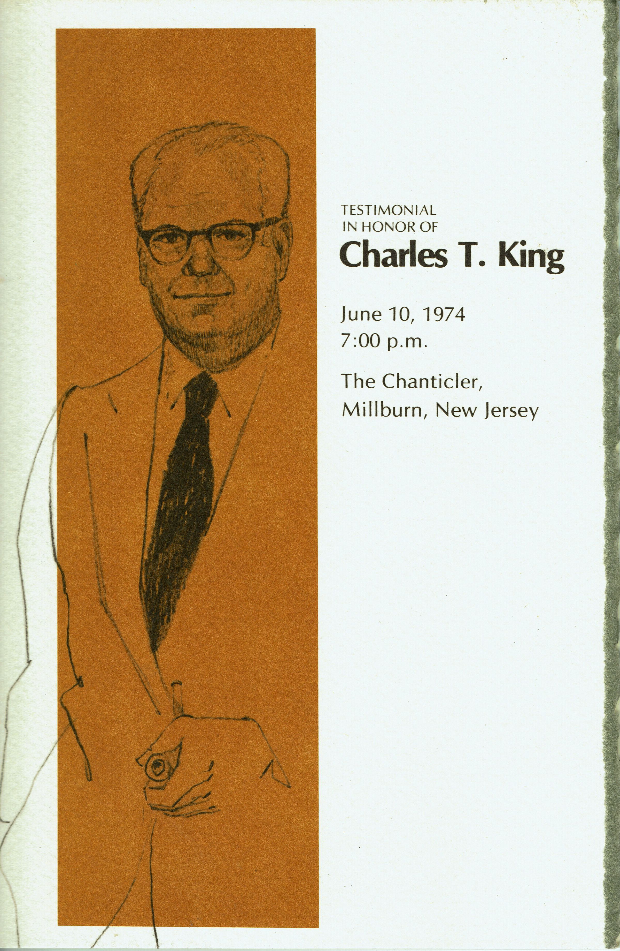 Testimonial in Honor of Charles T. King Program. June 10, 1974, 7:00 pm. The Chanticler, Millburn. 28 pp., illustrated with B&W photographs.Acquisition