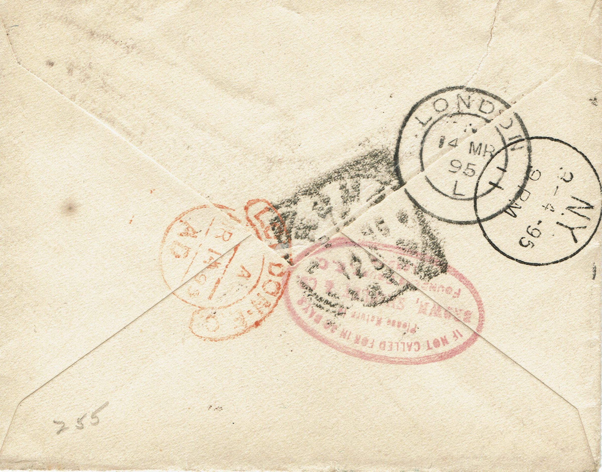 Envelope postmarked Short Hills, March 4, 1895 addressed to Mrs. John Wells at the Angleterre Hotel Rome. Written in parenthesis (For Miss Kobbe). Kobbe (1857-1918), music critic for the New York Herald, who lived in Short Hills at the time. Kobbe had 5 children: Four daughters and one son.The letter may have been intended for Gustave Kobbe's eldest daughter, Hildegarde, who would have been 7 at the time.Acquisition