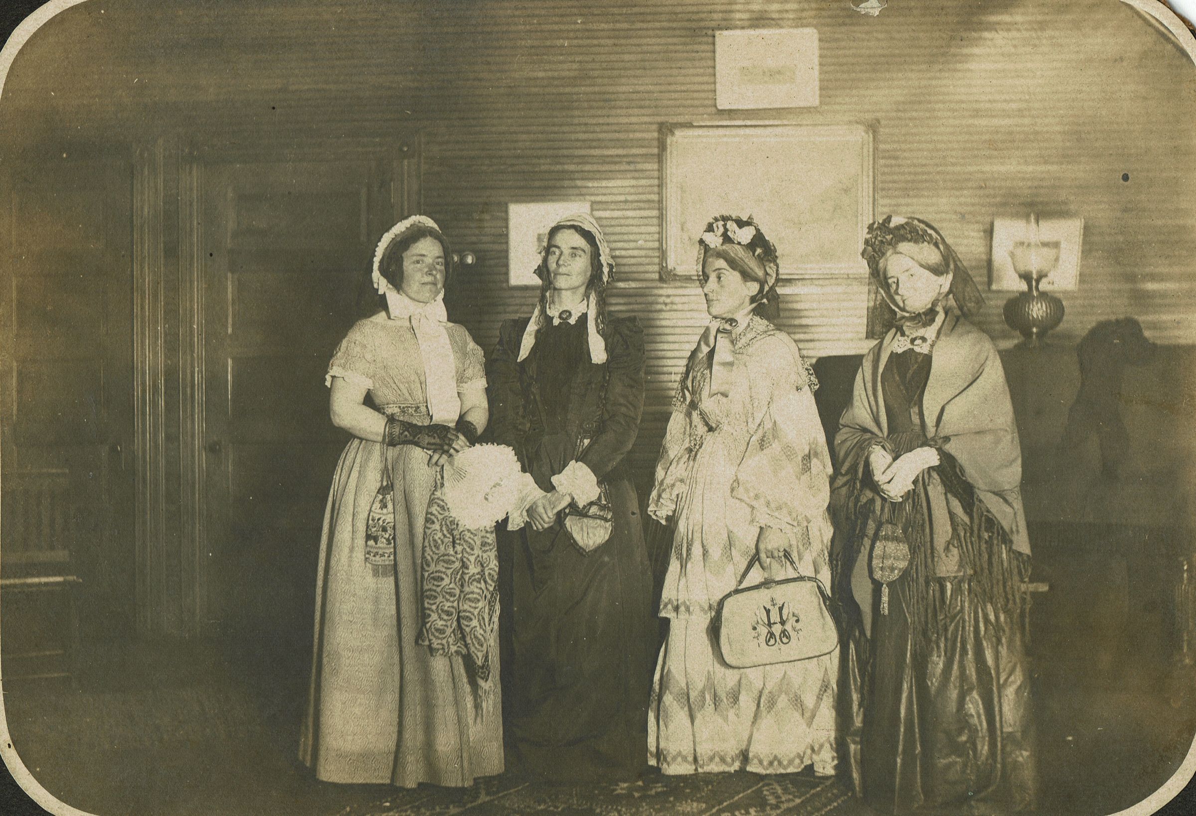 Photograph of four women dressed in costume at St. Stephen's Parish Hall. Identification of women and context for photograph are unknown. Image Id # 92 of Centennial CollectionCollection