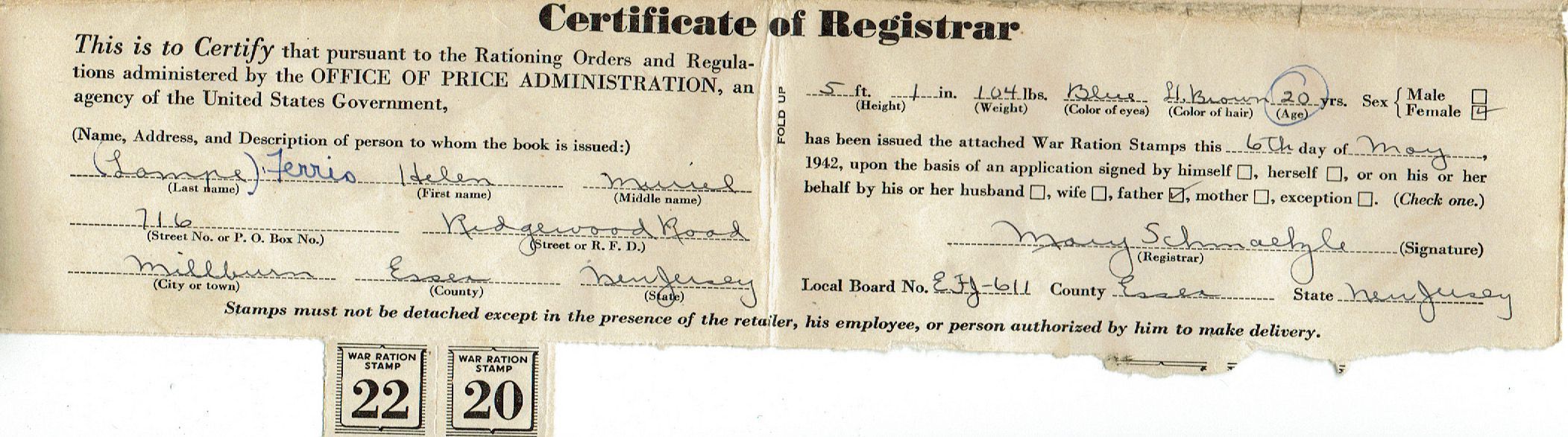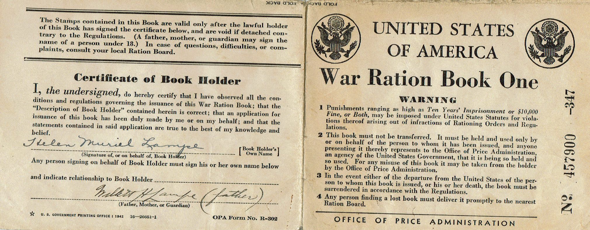 Lampe: Helen Lampe War Ration Book, 1942Entry/Object ID