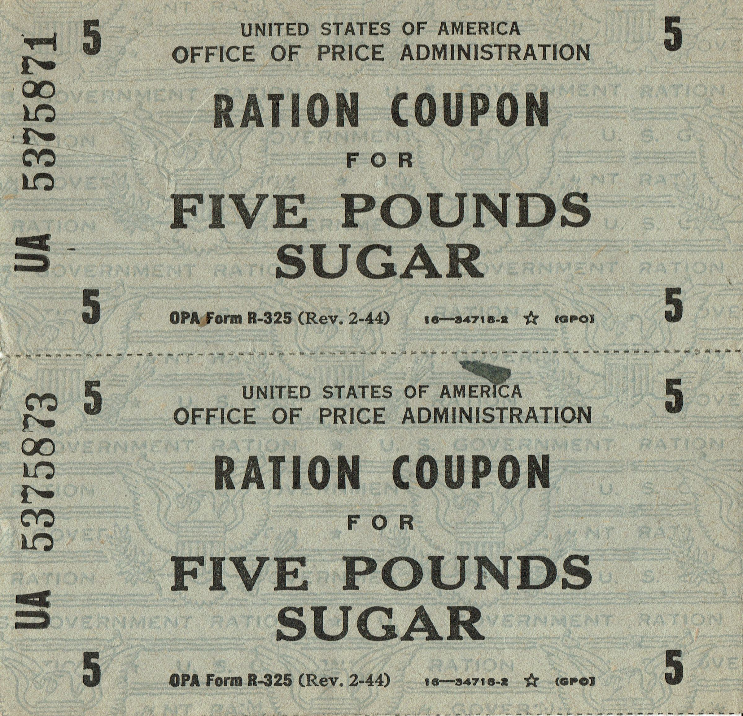 Lampe: Sugar Ration Coupons, 1945Entry/Object ID